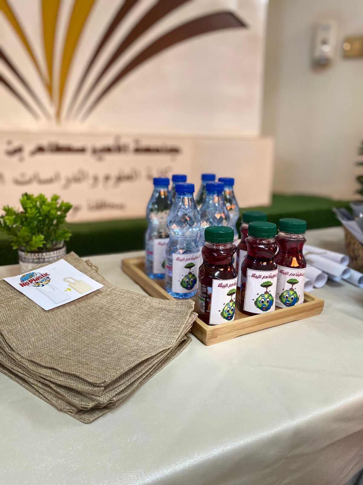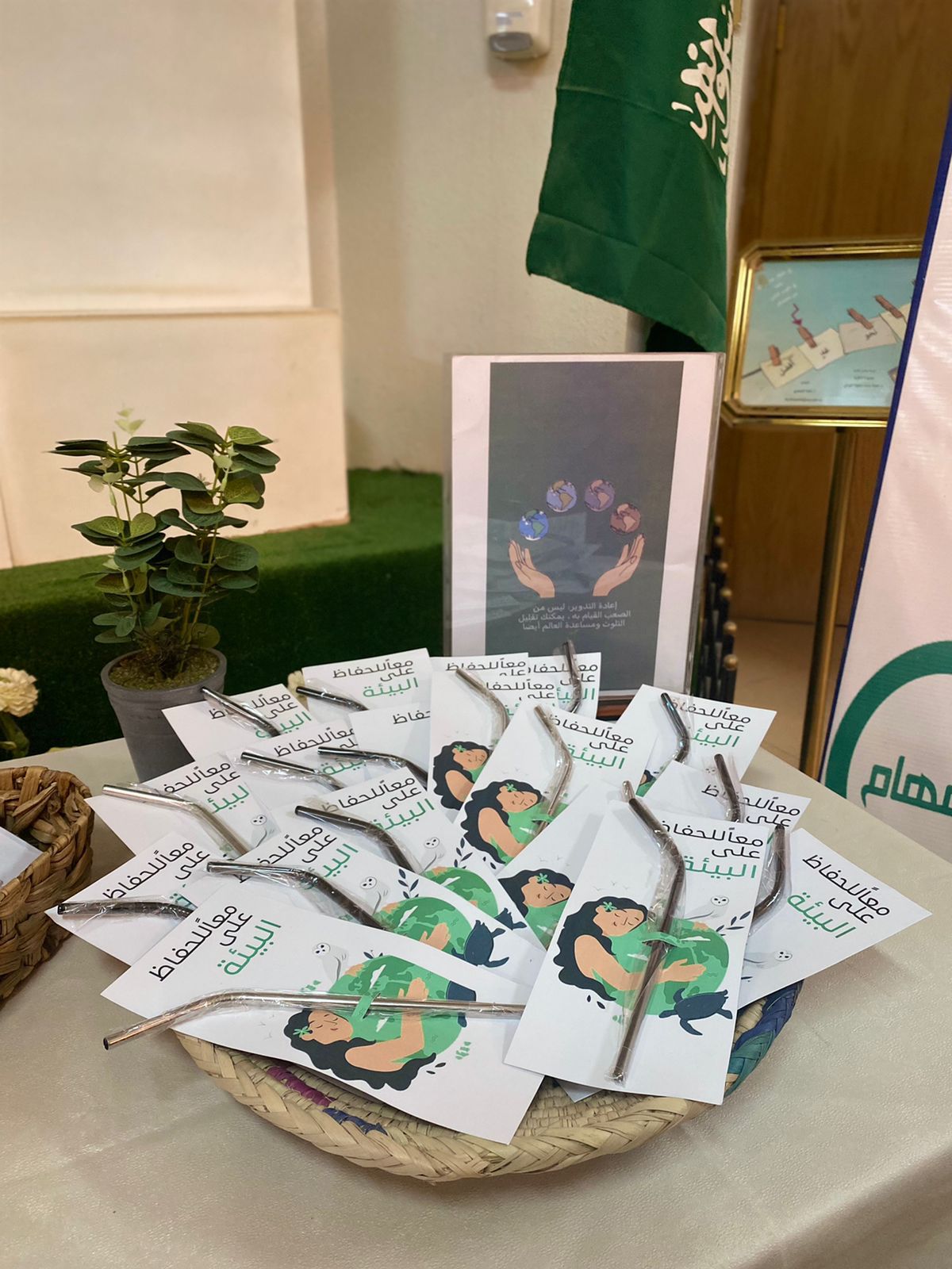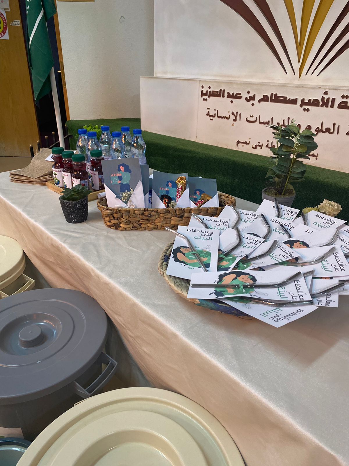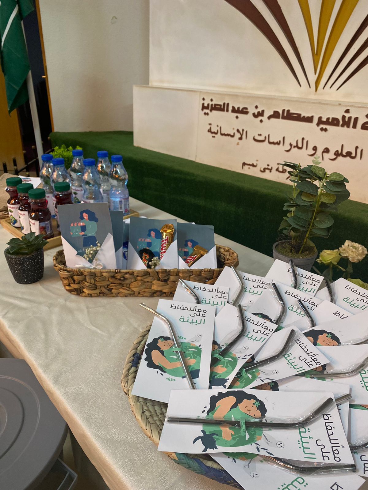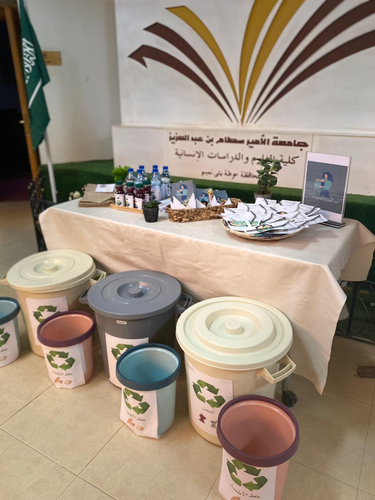 عرض توضيحي وركن توعوي عن فائدة إعادة التدوير وإدارة النفايات للمحافظة على البيئة في ساحة الكلية احتوى على توزيعات وسلال إعادة تدوير وأكياس قماشية لا ستبدال الأكياس البلاستيكية، وقد حضر الفعالية عدد من رئيسات الأقسام وأعضاء هيئة التدريس ومنسوبات وطالبات الكلية.