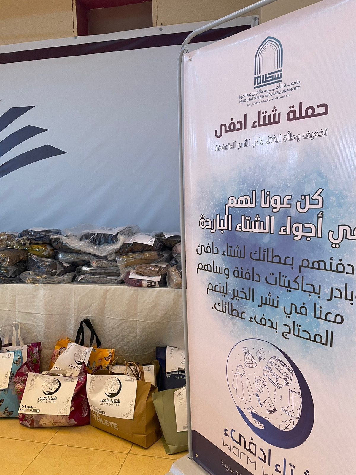 انطلاقاً من المبادئ الإسلامية وتحقيقاً لرؤية المملكة ٢٠٣٠ في تطوير وتنظيم العمل التطوعي، وتحت رعاية عميدة كلية العلوم والدراسات الإنسانية بحوطة بني تميم الدكتورة/ حصة بنت سعود الهزاني أطلقت الكلية من خلال منصة العمل التطوعي حملة إنسانية بعنوان "كسوة شتاء" تحت شعار "شتاء أدفى" يومي الثلاثاء والأربعاء ١٧ - ١٨ /٦/ ١٤٤٤هـ، في مقر الكلية، شارك فيها ٢٧ متطوعة من منسوبات وطالبات الكلية، جمع خلالها أكثر من ٢٥٠ جاكيت شتوي لمختلف الأعمار وفرزها وتصنيفها وتوزيعها على المستحقين، وتشكر الكلية كل من تطوع في هذه الحملة وساهم في نجاحها، ادام الله عز وخير هذه البلاد المباركة.