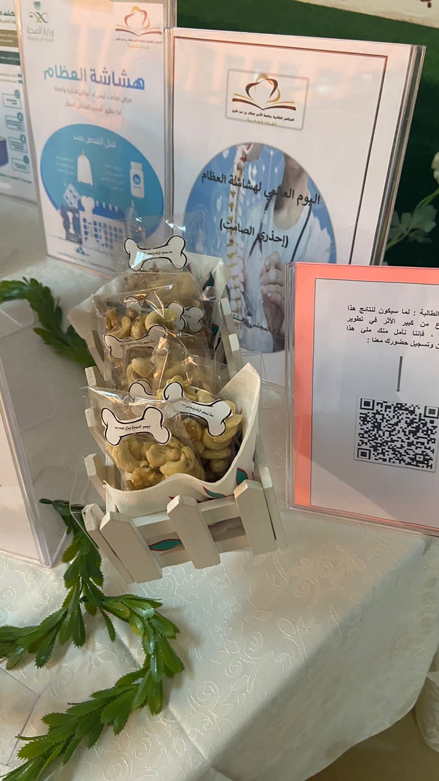 خصصت منظمة الصحة العالمية يوم (20 أكتوبر) من كل عام ليكون يوما" عالميا" لمرض هشاشة العظام، للتذكير بخطورة الإصابة به ولنشر التوعية عنه بشكل مكثف، ولأهمية ذلك نظم المجلس الاستشاري الطلابي بإشراف أ. منيره إبراهيم التميمي وبرعاية كريمة من عميدة كلية العلوم والدراسات الإنسانية بحوطة بني تميم د. حصة بنت سعود الهزاني يوم الخميس الموافق 24/ 3/ 1444هـ ركن توعوي بعنوان (احذري الصامت)