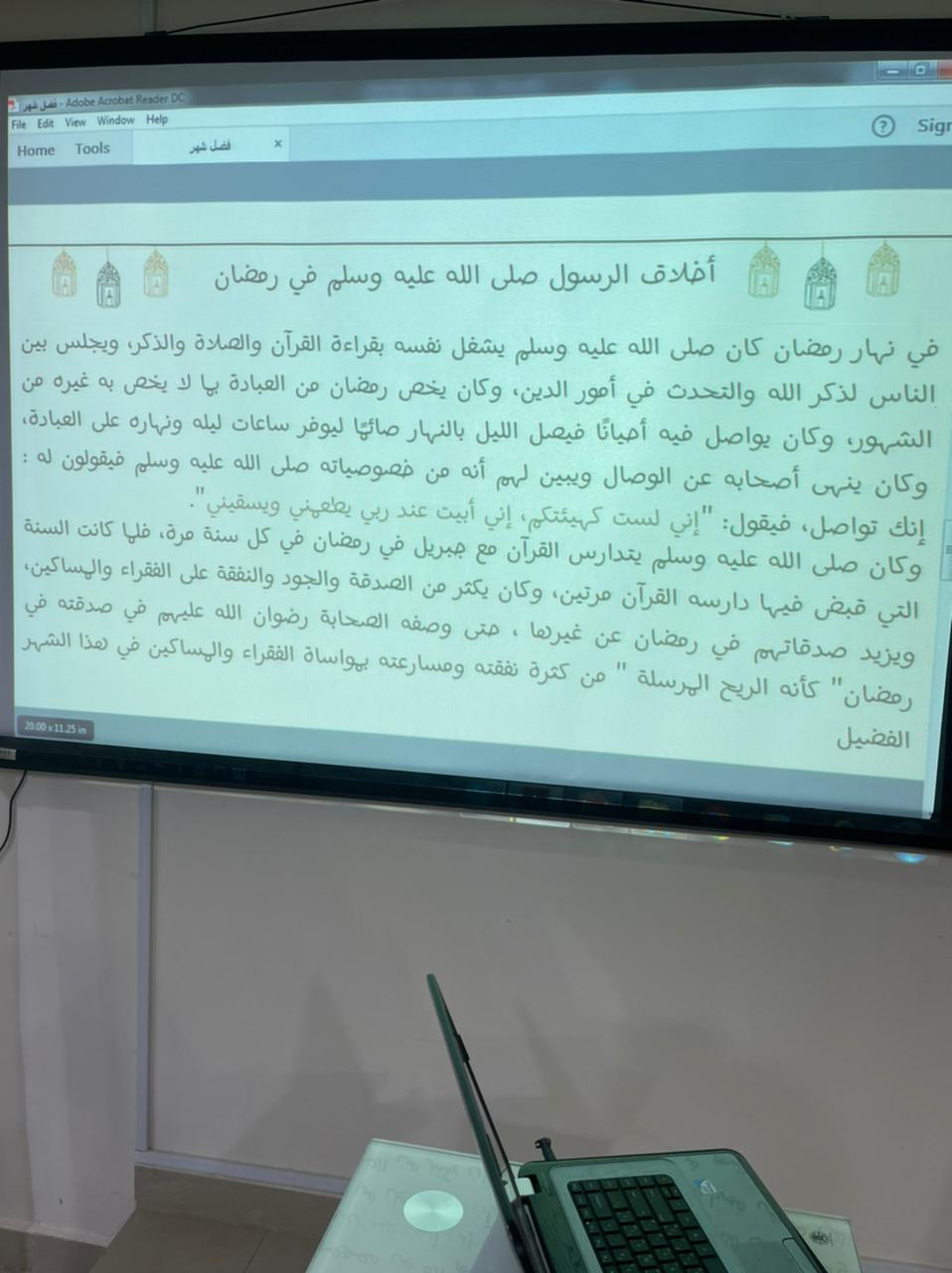 تضمن البرنامج عرضًا اشتمل على آيات قرآنية وأحاديث نبوية عن فضل شهر رمضان وأنه شهر القرآن وأهم الأعمال فيه وفضل القيام، والسحور وعن فضل ليلة القد، وعن أخلاق رسول الله صلى الله عليه وسلم في شهر رمضان، كما اشتمل البرنامج على ركن شاركت فيه الطالبات بتوزيعات عن فضل القرآن، وقدوم رمضان.