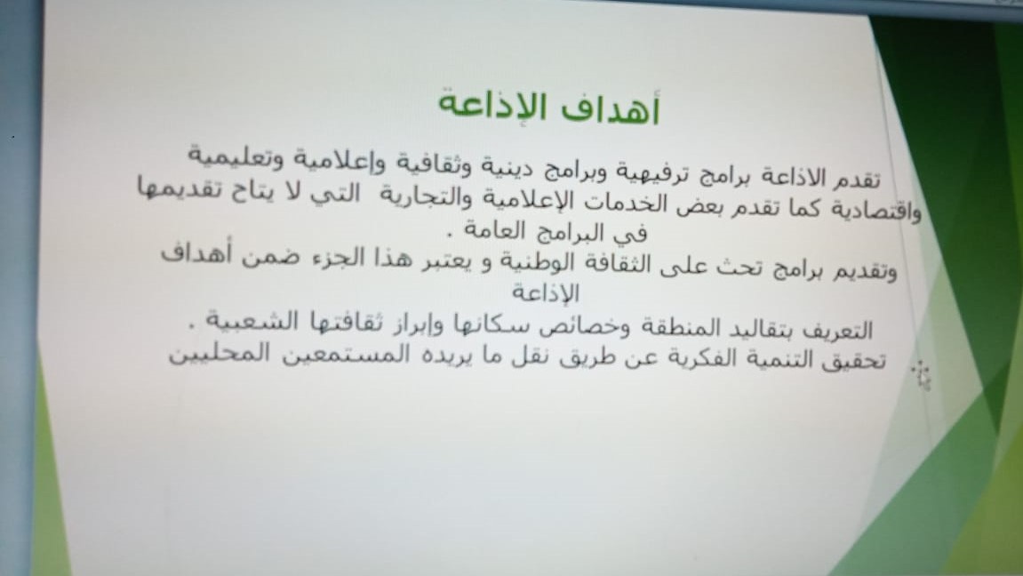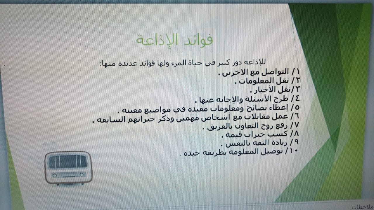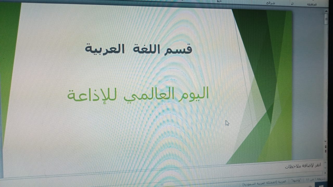 أعلنت الدول الأعضاء في اليونسكو 2011 عن يوم 13 فبراير يوماً عالمياً للإذاعة (WRD ) واعتمدت ذلك الجمعية العامة للأمم المتحدة عام 2012 على اعتبار أن الإذاعة وسيلة قوية للاحتفال بالإنسانية بكل تنوعها؛ لكونها تشكل منصة للحوار الديمقراطي، واحتفالاً بهذا اليوم أقام قسم اللغة العربية في يوم الخميس الموافق: 1443/8/21هـ برعاية عميدة كلية العلوم والدراسات الإنسانية بحوطة بني تميم د. حصة بنت سعود الهزاني برنامجاً بإشراف د/ نادية لطفي وتقديم طالبات القسم، تحدثن فيه عن أهداف الإذاعة من حيث تقديمها برامجا ترفيهيه ودينية وثقافية وإعلامية وتعليمية واقتصادية كما تقدم بعض الخدمات التجارية، وتحدثن أيضا عن خصائصها ومزاياها المرتبطة بعملية الاتصال ومن حيث كونها وسيلة تعليمية، وأنواعها، ومميزات الإذاعة المدرسية وأهميتها وفوائد الإذاعة في حياة الإنسان من حيث التواصل مع الآخرين، ونقل المعلومات والأخبار.