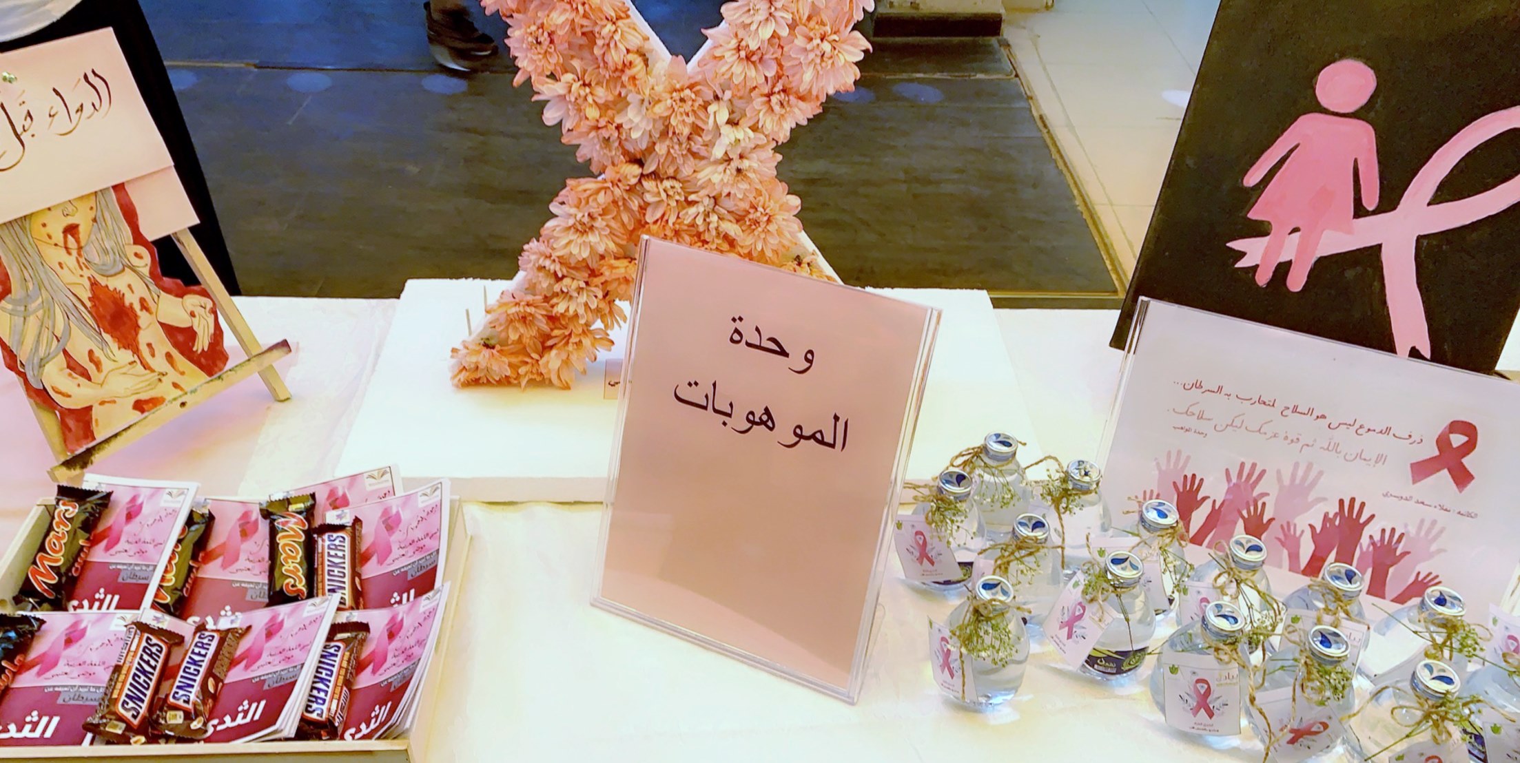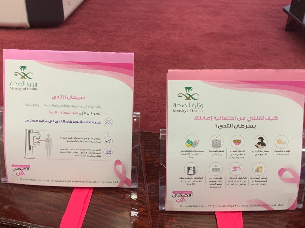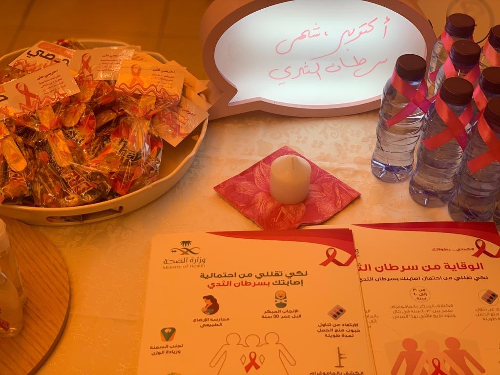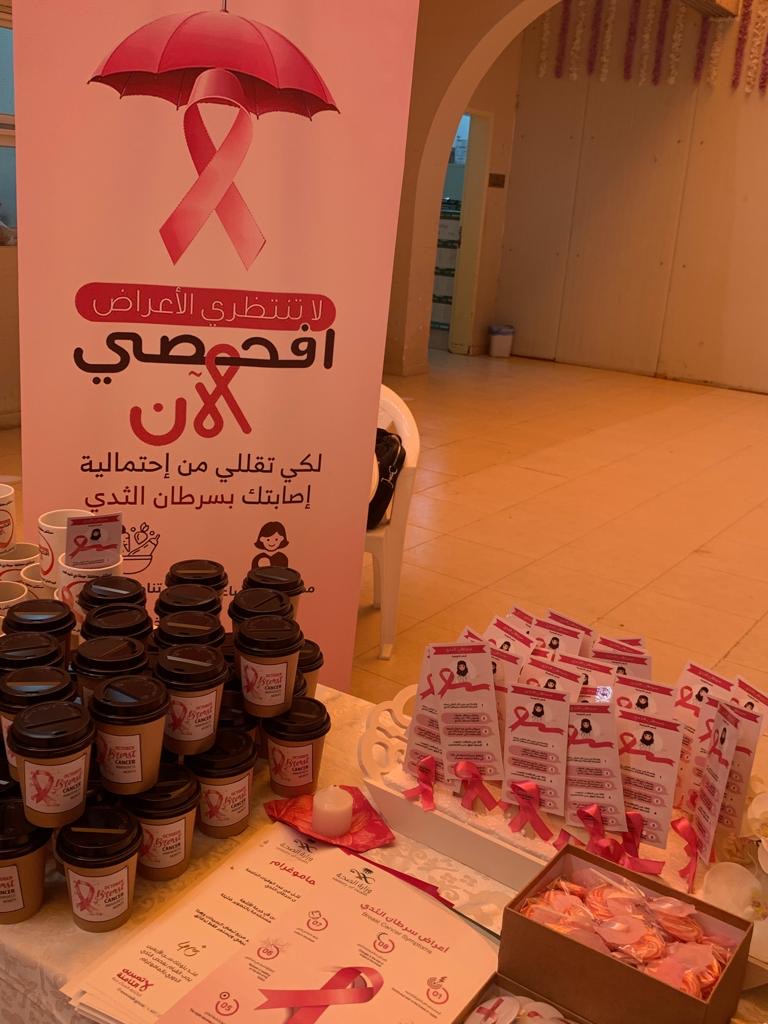 مساندة من د. حصة بنت سعود الهزاني عميدة كلية العلوم والدراسات الإنسانية بحوطة بني تميم لليوم العالمي لسرطان الثدي وتحت شعار "أنتِ قوية" قدمت وحدة العمل الطلابي بالتعاون مع مستشفى حوطة بني تميم العام، بحضور الطبيبة : هالة عبدالرحمن مردان، والطبيبة : ساجدة بدر الدين يوسف، وعدد من الممرضات، برنامجاً توعوياً بالتعاون مع الأقسام والأندية والوحدات والمجالس الطلابية بالكلية، وذلك يوم الأحد الموافق: 1441/2/28هـ ، حيث تمحور البرنامج على عدد من الفقرات بدأ بمقدمة ترحيبية للحضور، عقبتها آيات من القرآن الكريم عن الشفاء، ثم تلتها مشاركة قسم اللغة الإنجليزية "بفيديو لمحاربات سرطان الثدي"، كما أُدرجت فيديوهات توعوية مقدمة من وزارة الصحة، وتلاها فقرة الطبيبة : هالة ، تمحورت حول مفهوم السرطان بشكل عام وسرطان الثدي بشكل خاص، والتحدث عن أعراضه وكيفية الكشف عنه وعوامل الإصابة بالمرض. هدف البرنامج إلى تقديم رسالة توعوية للوقاية من المرض، وأهمية الفحص المبكر، وشروط الفحص المجاني. ثم عقبتها فقرة لمُحارِبة سرطان، إذ عرضت تجربتها وكيفية تغلبت على المرض بعون من الله، كما شارك قسم اللغة العربية بفيديوهات توعوية. وخُتم البرنامج بمسابقة تنافسية حول المعلومات المقدمة، ومن ثم على جوائز قيّمة، كما كُرّمت الطبيبة والممرضات بشهادة شكر وتقدير على ما بذلوه من توعية للحضور، ولقي البرنامج تفاعلا من جميع منسوبات الكلية.