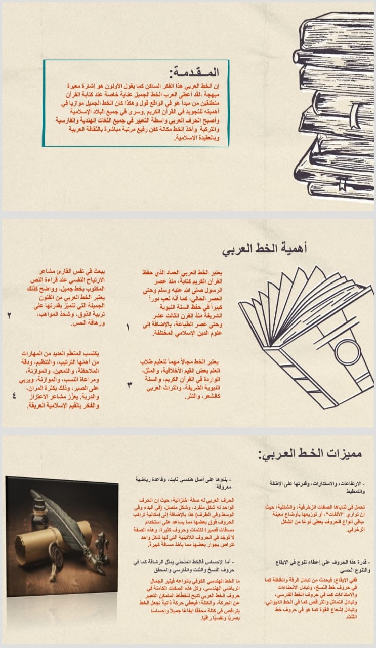 حيث ابتدأ البرنامج بمقدمة تعريفية بالخط العربي بينت مكانته وارتباطه بالدين واللغة، ثم بيان لأهمية ومميزات الخط العربي، تلا ذلك ذكر لبعض أنواع الخط العربي، ثم الحديث عن أهم المبادرات التي قامت بها وزارة الثقافة ضمن مبادرة عام الخط العربي ٢٠٢١، مثل: