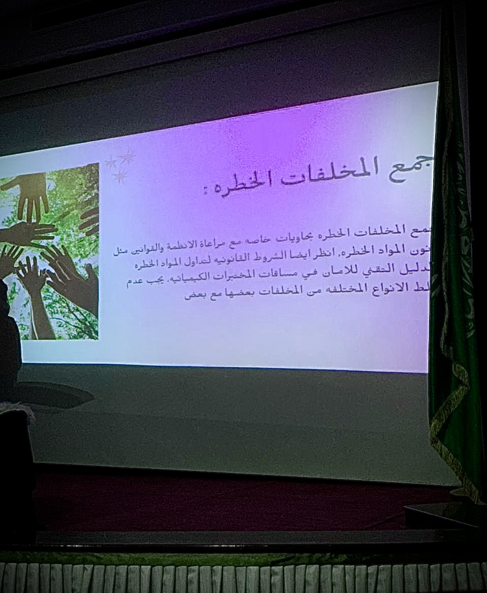 إيمانًا بأهمية المحافظة على البيئة وما تظهره من دور فعال وتأثير بارز على الفرد والمجتمع أقام نادي أصدقاء البيئة بكلية العلوم والدراسات الإنسانية بحوطة بني تميم تحت رعاية عميدتها الدكتورة حصة بنت سعود الهزاني برنامجًا بعنوان (معالجة مخلفات المعامل) وذلك في يوم الأربعاء الموافق 2/3/1444 في تمام الساعة 11:30 صباحًا.