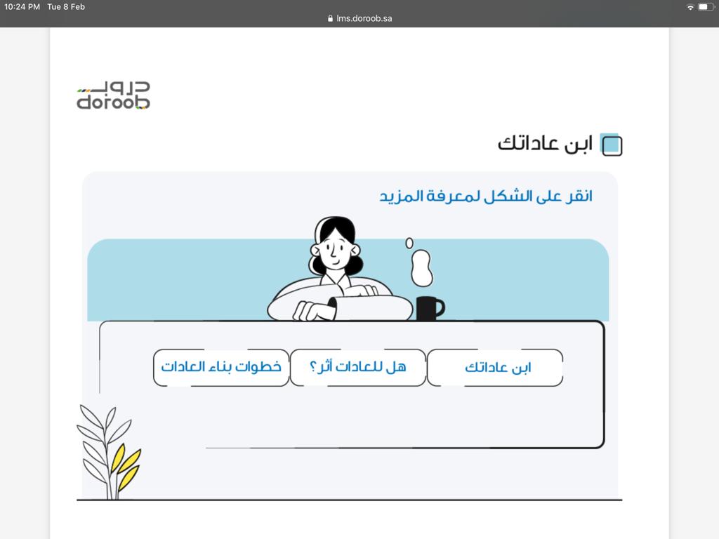 ثم تم توجيه الطالبات إلى موضوع الدورة في التخصصات المتوفرة بالمنصة في المهارات العامة: "طور ذاتك" وفيها التعرف على الكيفية التي يبحر الإنسان في ذاته ويستكشف كوامن قوتها وضعفها ويستخدم ذلك في تطورها ورفعتها. حيث تهدف الدورة إلى توضيح الخطوات الرئيسية التي تقود الشخص لتطوير ذاته وهي: التهيئة، التخطيط، التنفيذ، النتائج والمراجعة.