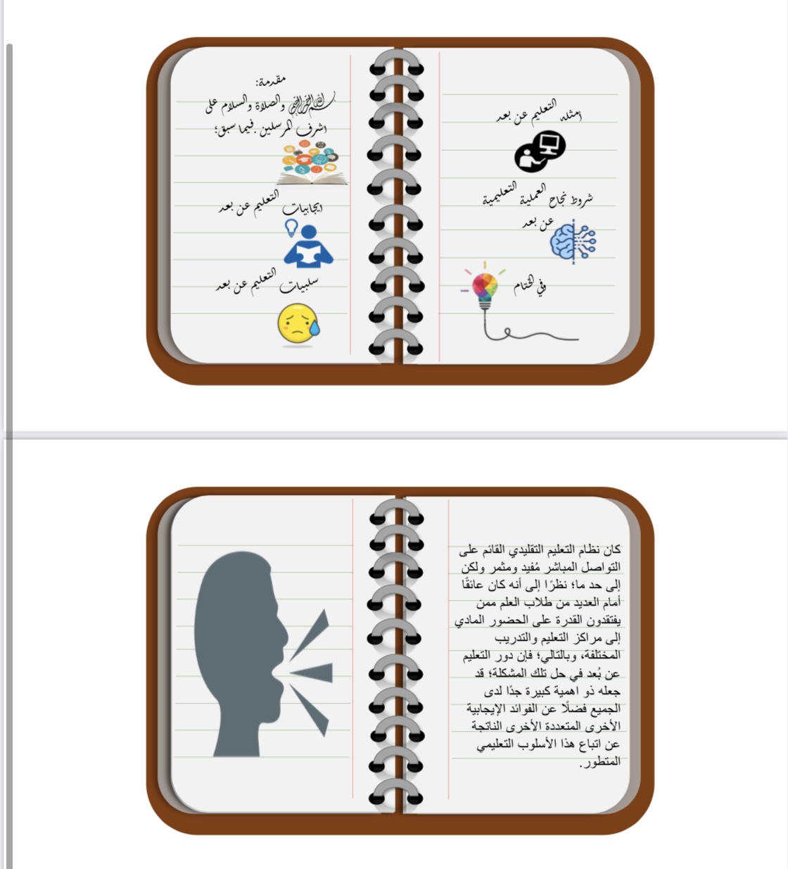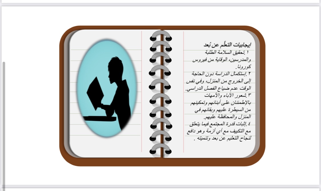 قدمت الطالبات عرضا تقدمياً ومقطع فيديو ناقشن من خلاله إيجابيات وسلبيات التعلم عن بعد في ظل جائحة كرونا وعبرت كل طالبة عن رأيها.