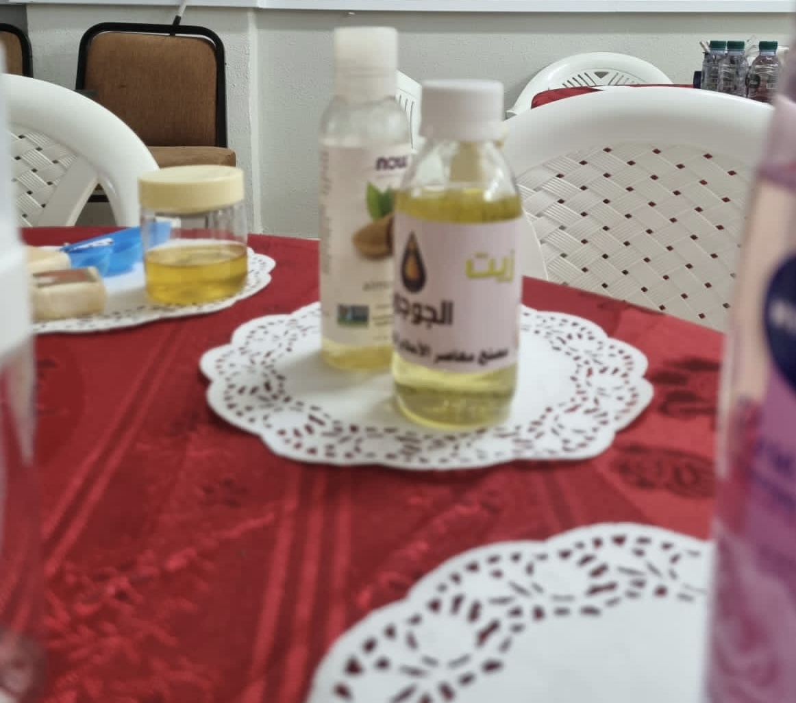 تلا ذلك الجانب التطبيقي العملي بمشاركة الحضور وهو عمل مقشر ومفتح للبشرة، وغسول الوجه الرغوي، وخمرية مرطبة للبشرة والشعر، وكرات الاستحمام، أيضا عمل قناع لإخفاء التجاعيد وتفتيح وترطيب البشرة. وفي ختام الدورة تم توزيع عينات من انتاج المتدربات، وقد نالت الدورة على استحسان الحضور.