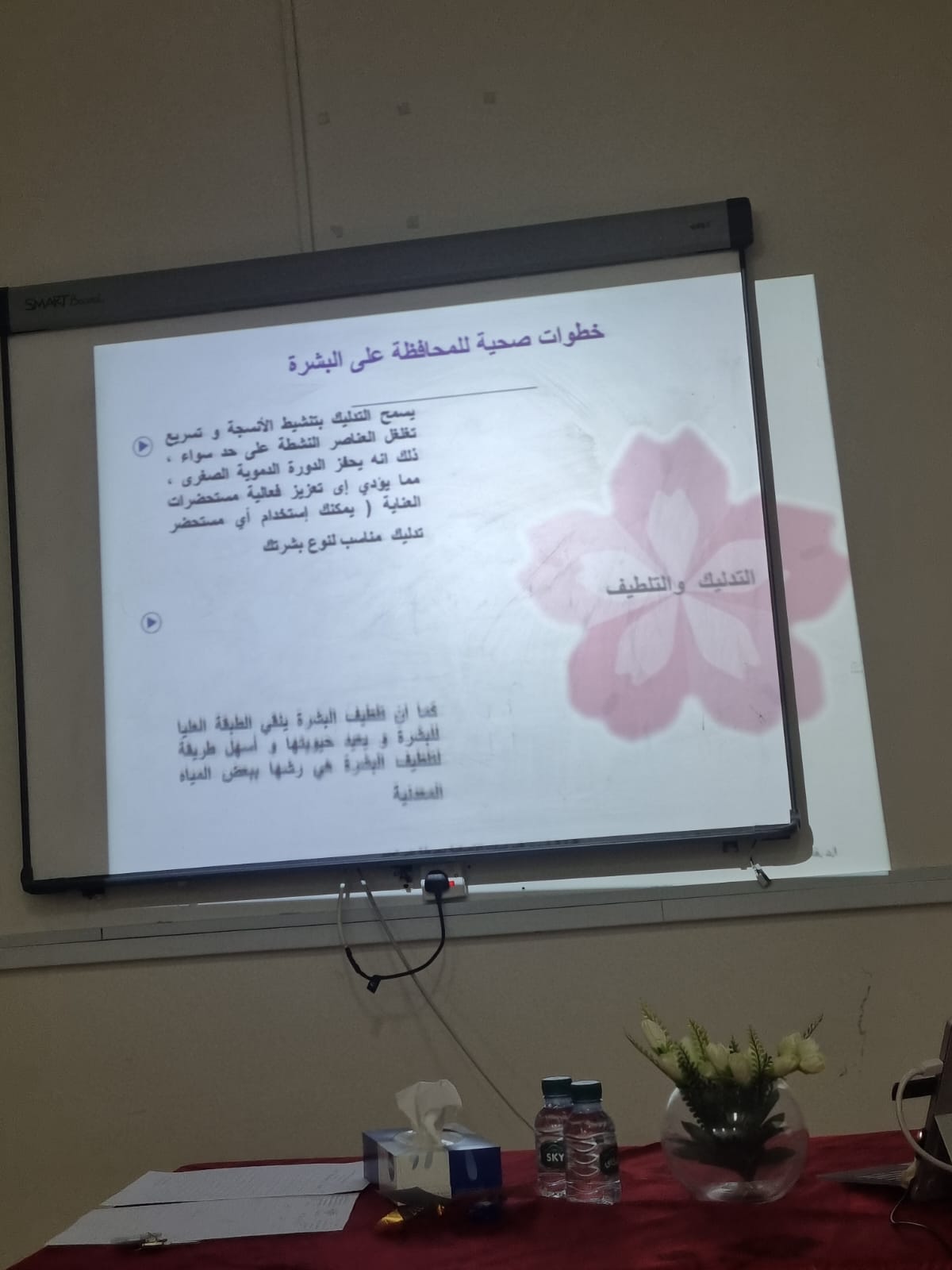 جمال البشرة ونضارتها أحد أهمّ مقومات الجمال، ويوجد عدّة عوامل تعمل على إصلاح البشرة وأخرى تدمرها، ولأهمية الأمر أقام قسم الكيمياء بالتعاون مع نادي أصدقاء البيئة تحت رعاية عميدة كلية العلوم والدراسات الإنسانية بحوطة بني تميم د. حصة بنت سعود الهزاني دورة تدريبية بعنوان "الجمال يكمن في البشرة الصحية" من تقديم ا. باتعة الجعفري ود. فاتن إسماعيل وذلك في يوم الأربعاء الموافق: 1443/8/20هـ من الساعة 8 إلى 12 ظهرًا بإشراف ا. هياء المبخوت ا. مها الصقعبي.