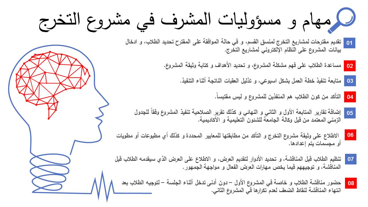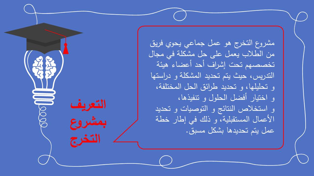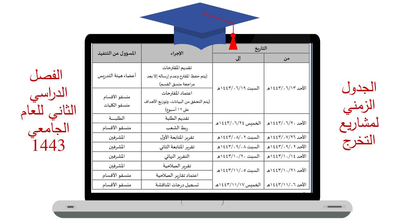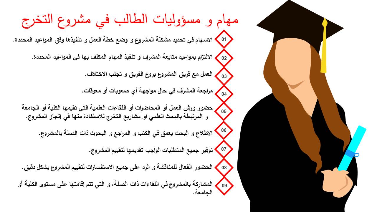 وفي الختام تتقدم لجنة مشاريع التخرج بوحدة الخريجات بجزيل الشكر والتقدير لجهود مشرفي ومنسقي مشاريع التخرج بالكلية ونسأل الله لهم دوام التوفيق والسداد.