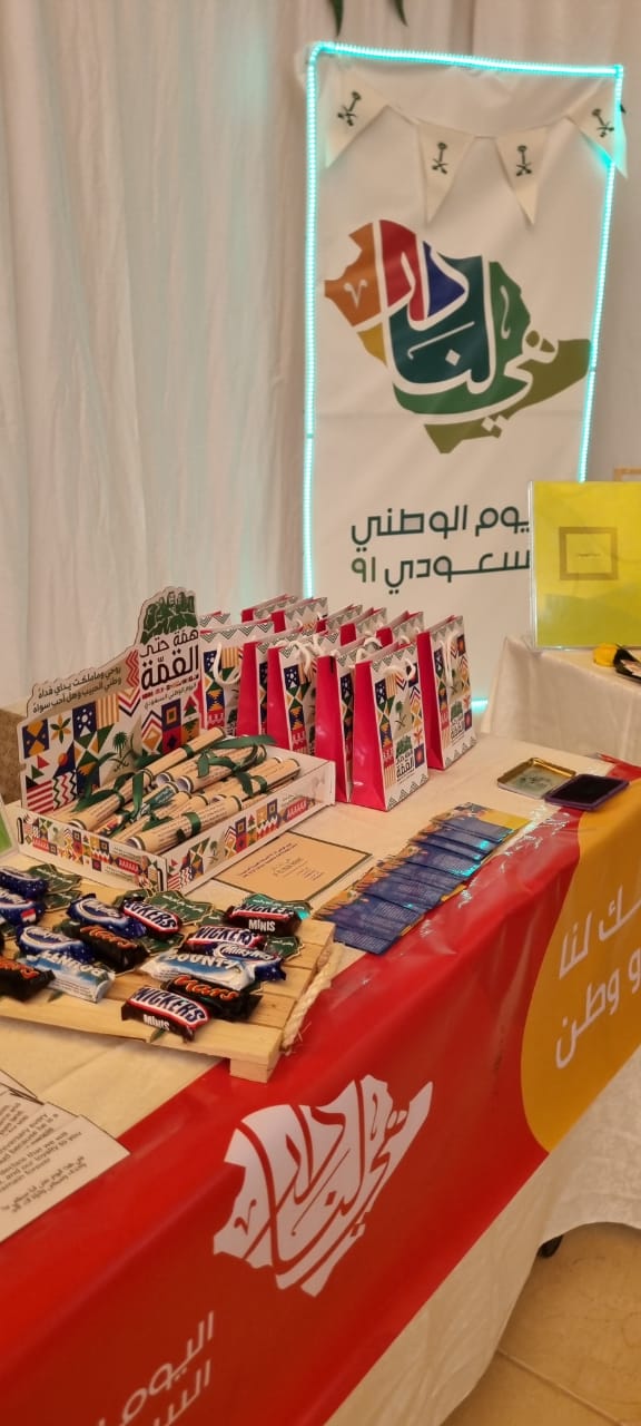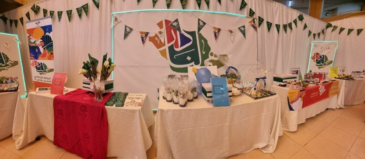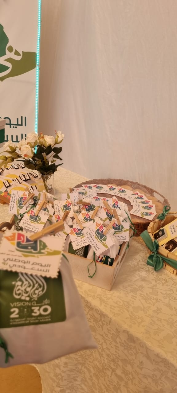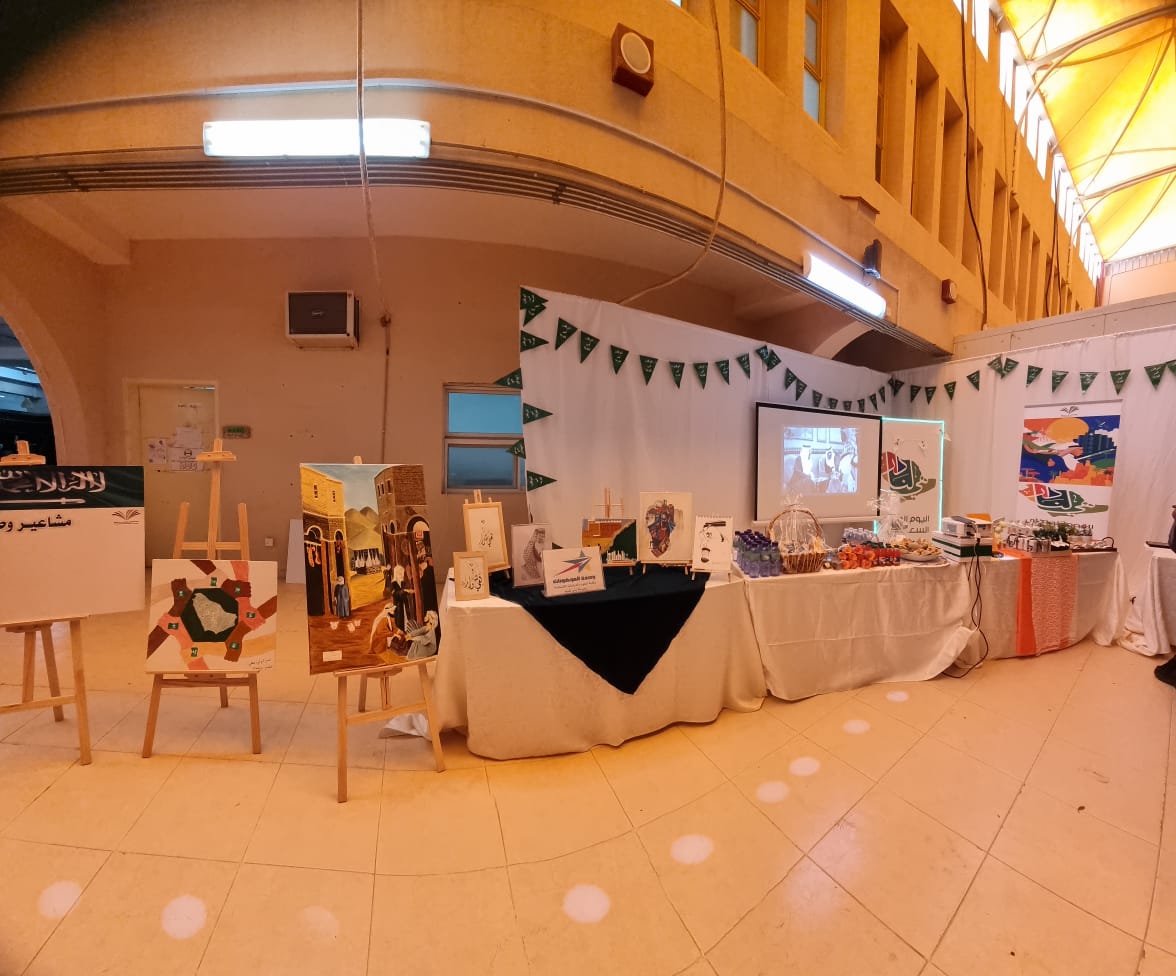 وتوالت المشاعر صادحة بفعالية (عناق وطن) في يوم الأربعاء الموافق: 1443/2/22هـ؛ حيث اكتست الكلية باللون الأخضر وأقبلت الجهود وامتدت الكفوف ليشارك الجميع من وحدة العمل الطلابي وبما فيها من أندية ومجالس وأقسام ووحدات ليصدح السلام الملكي بحضور فخري ونفوس يملؤها العناق لوطن هي لنا دار ونحن لها عمار للتطلع لنهضة قادمة وبهجة سامية في رؤية محققة 2030 رسالتها طموحنا يبدأ اليوم للغد؛ حيث قدمت الطالبة بلقيس التميمي صباحات للوطن ومن ثم القرآن الكريم تلاه مونتاج فخري تضمن مشاركات الطالبات الصوتية وإبراز مواهبهن الطموحة، كما ألقت عميدة الكلية كلمتها التي سمت بمفاخر الوطن وما أولته من اهتمام بالعلم والتعليم وبث أجمل التهاني بهذه المناسبة العريقة في تاريخ المملكة العربية السعودية، كما شاركت الطالبة نورة الكثيري من قسم اللغة العربية بقصيدة وطنية والقاء مميز، ومن ثم دعوة للجميع لحضور المعرض الوطني الذي ضم مشاركات الأقسام والوحدات والأندية والمجالس الطلابية في جو بهيج ومسابقات وطنية بجوائز قيمة صنعت جمالاً وحماساً وقد روعي فيه تطبيق الاحترازات الوقائية وفق مبادئ التباعد الاجتماعي.