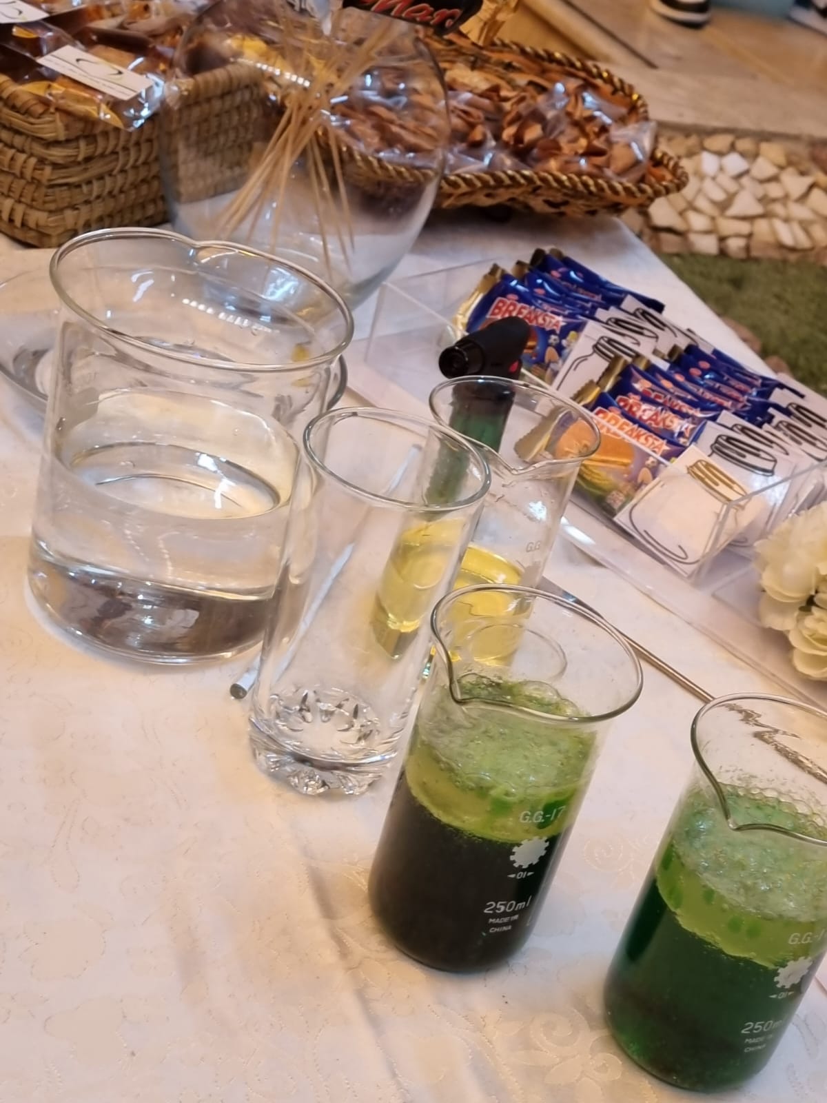 واختتمت الجولة على الأركان بركن الضيافة بإشراف ا. منيرة التميمي وطالبات المجلس الاستشاري الطلابي للقسم حيث اشتمل على بعض المشروبات والحلويات التي تم عرضها بطريقة مميزة تمثل قسم الكيمياء.