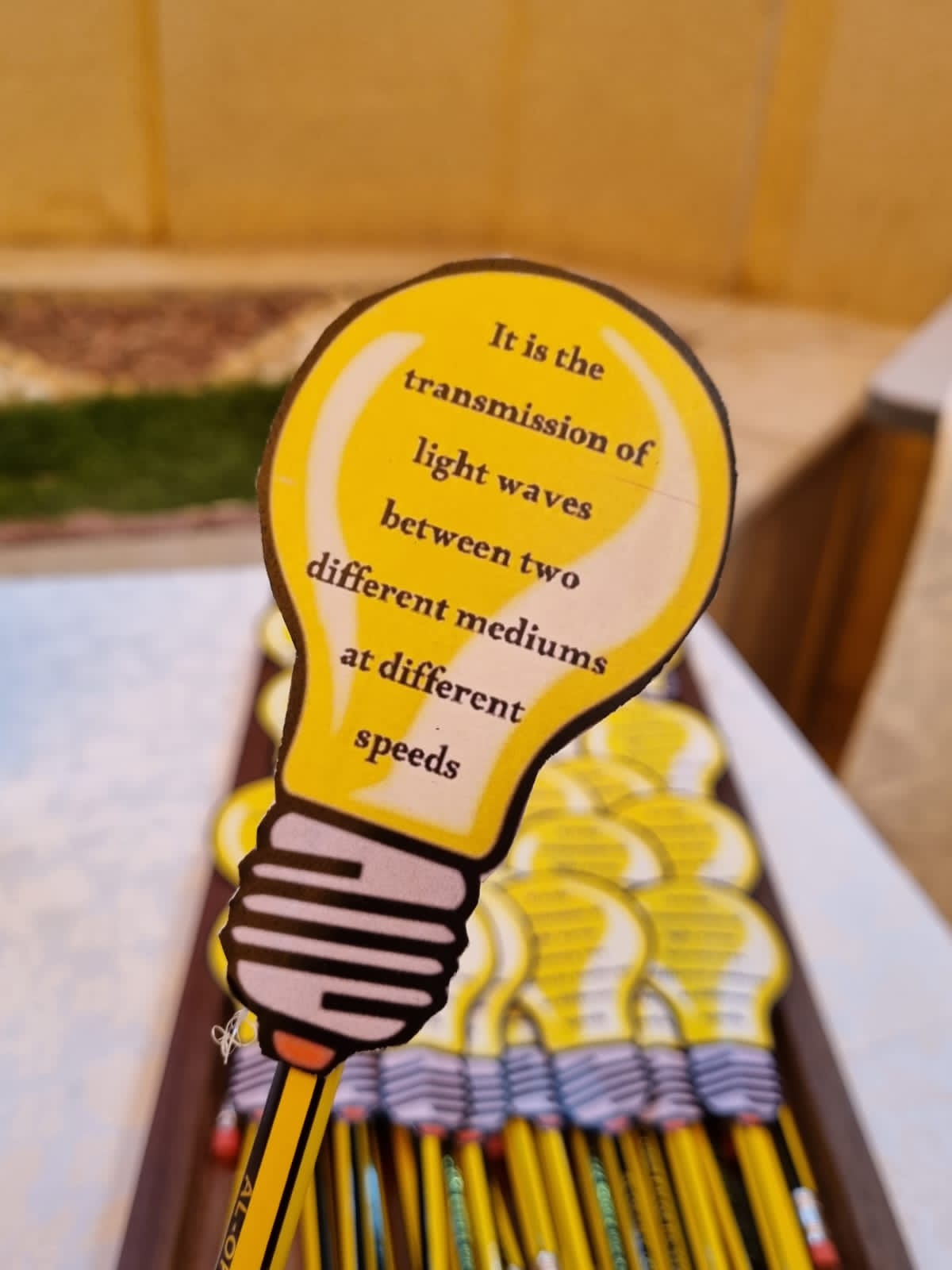 ثالثًا: ركن الفيزياء بإشراف د. فرحة الفاضل ود. لطيفة بن عمار و أ. نورة المرير، حيث تكتشف من خلال هذا الركن عالمك بنظرة أعمق عن المعتاد اشتمل على عدة تجارب وهي: تجربة الهولوجرام، وتجربة انكسار الضوء، وتجربة الدائرة الكهربائية والفقاعات بالإضافة الى ركن الضيافة.