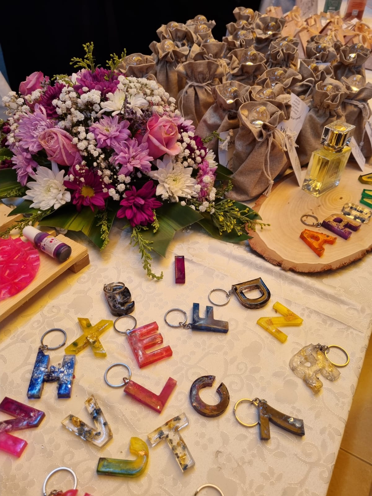ثانيًا: ركن صناعة العطور والريزن بإشراف أ. باتعة الجعفري و د. فاتن إسماعيل حيث تم عمل عطور بروائح ومكونات عديدة تلائم الأذواق المختلفة، وأيضا أبدعت الطالبات في عمل اكسسوارات مختلفة باستخدام مادة الريزن وبألوان خاصة بالمادة مع إدخال أوراق الذهب والفضة. وقامت الطالبات بتوزيع عينات صغيرة من كل المنتجات وكتابة المكونات عليها للاستفادة.