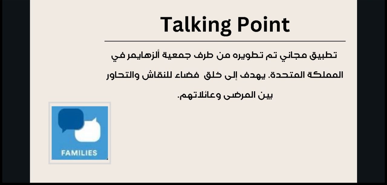صاحب الفعالية ركن توعوي تضمن عدة منشورات عن تطبيقات الذكاء الاصطناعي المخصصة لمساعدة مرضى الزهايمر، وقد نالت الفعالية استحسان الحضور حيث أثنى الجميع على جهود الطالبات لمواكبة الأحداث العالمية وتوظيف التكنولوجيا في مواجهة مشكلات المجتمع.