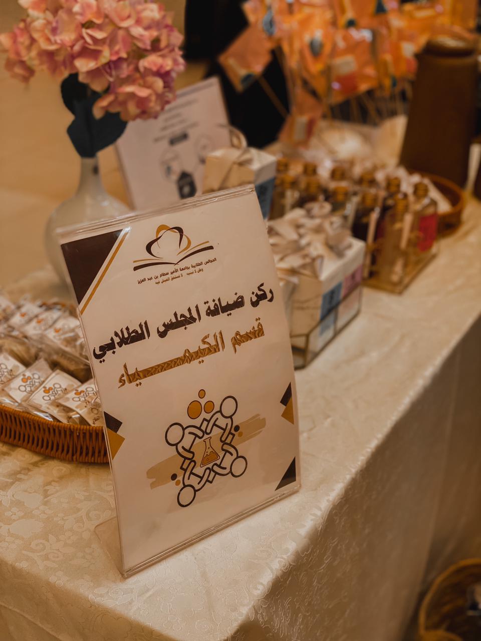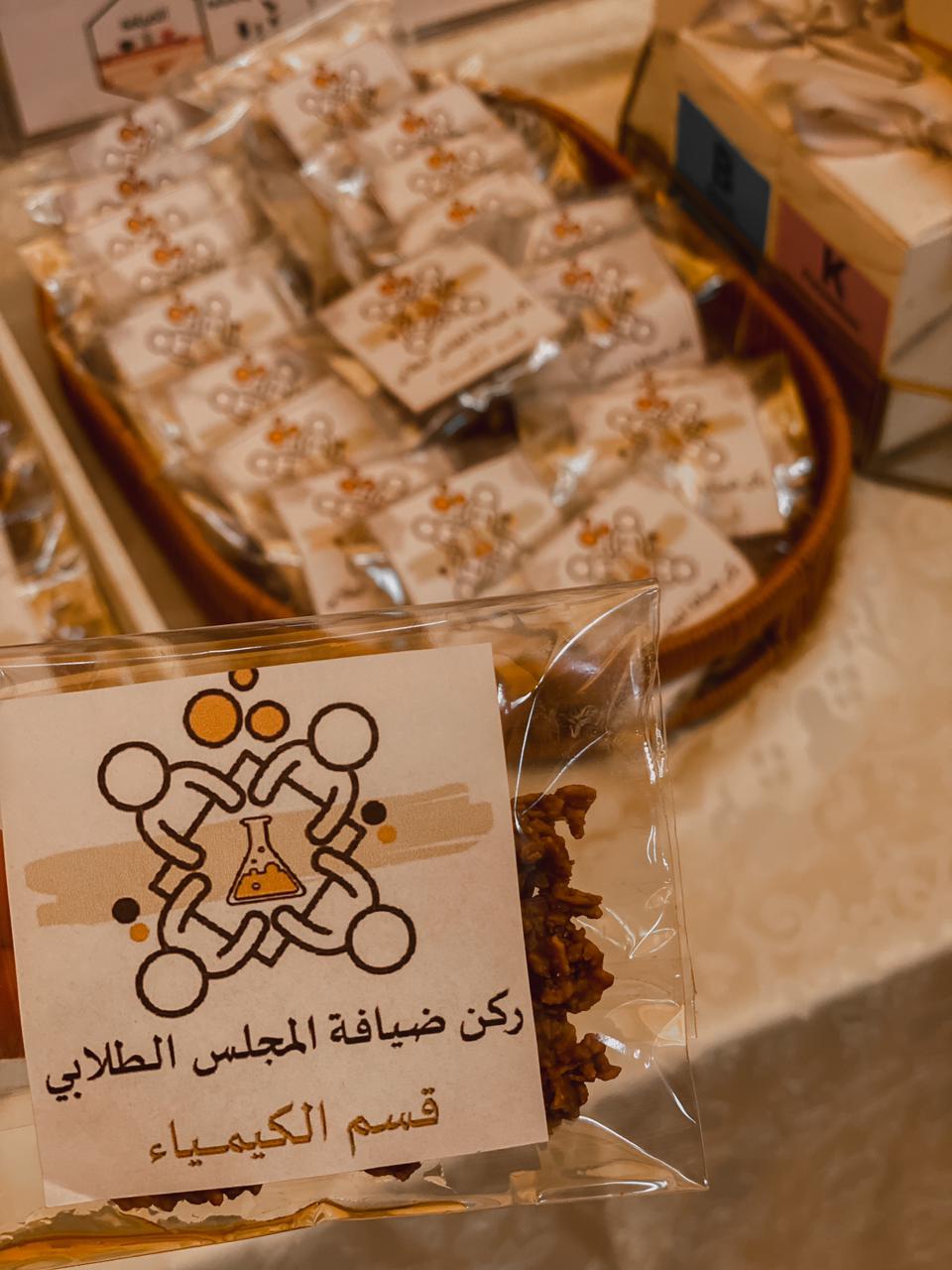 واختتمت الجولة على الأركان بركن الضيافة بإشراف طالبات المجلس الطلابي للقسم حيث اشتمل على بعض المشروبات والحلويات التي تم عرضها بطريقة مميزة تمثل قسم الكيمياء.