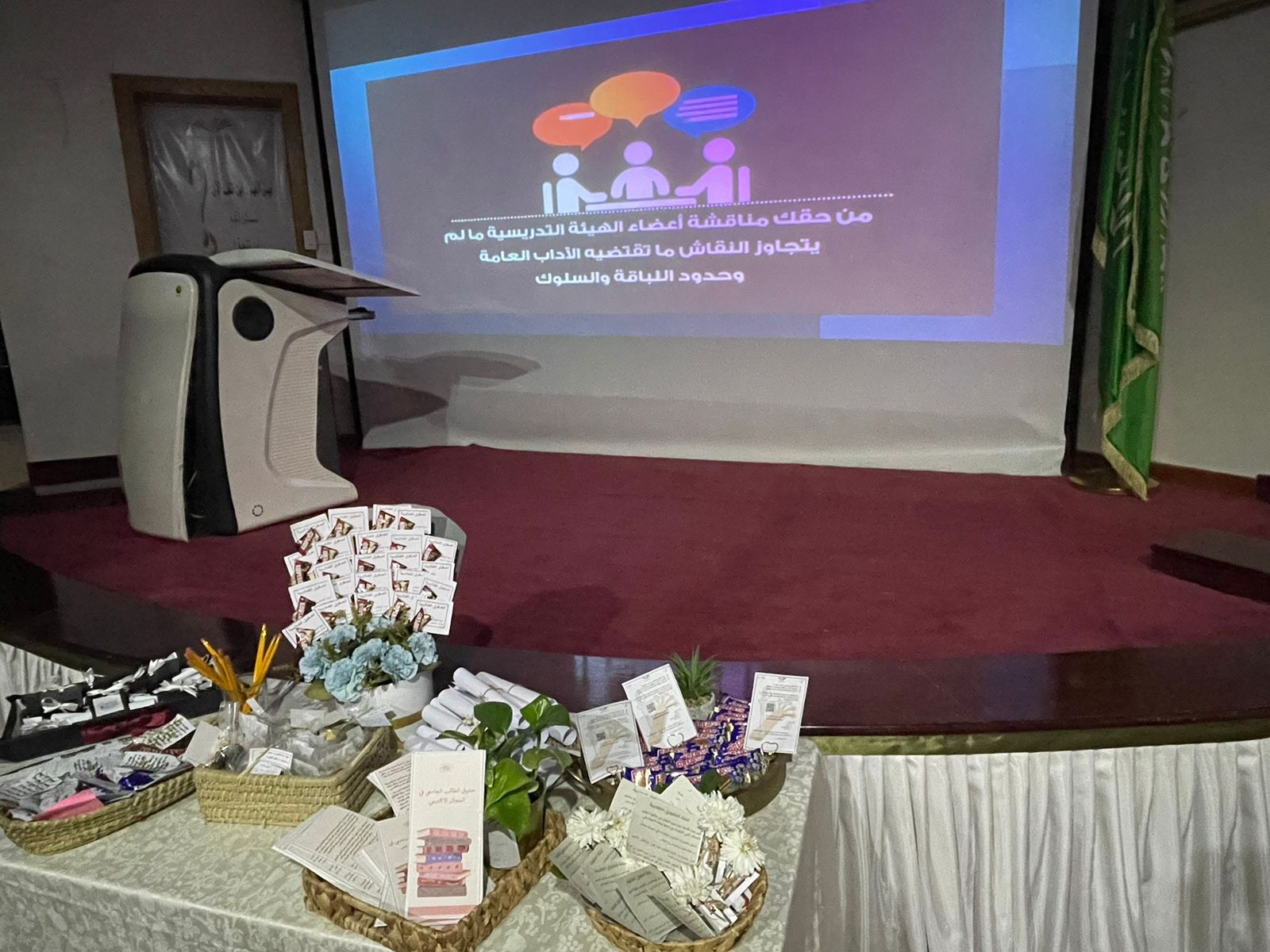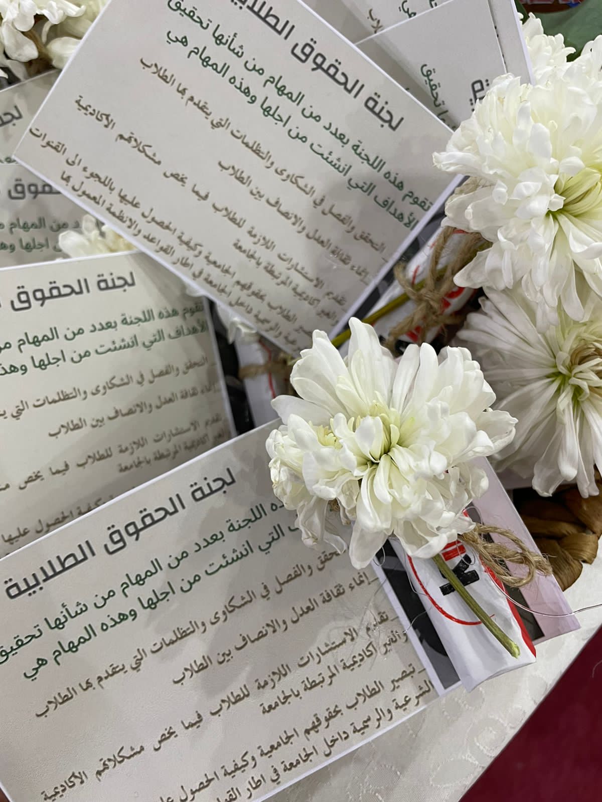 حيث تم التعريف بمهام وأهداف اللجنة والإجراءات الواجب اتباعها لتقديم الشكوى ونظام العمل بها، ثم تم إطلاع الطالبات على جميع حقوقهن والتزاماتهن الأكاديمية وغير الأكاديمية، وأبرز المشكلات والصعوبات والطرق المقترحة لحلها، كما تم توزيع منشورات تحوي وثيقة حقوق والتزامات الطالب الجامعي وطريقة التواصل مع اللجنة. وفي ختام اللقاء تم تسجيل أسماء جميع الطالبات المستفيدات من هذا اللقاء.