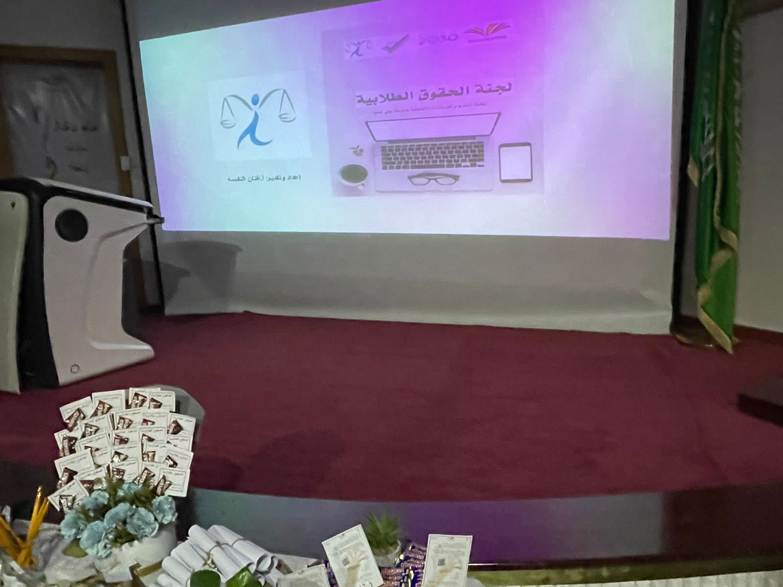 من أجل أن نصل إلى مجتمع أكاديمي تسوده روح العدل والتعاون ومن أجل بناء شخصية الطالب الجامعي وتنمية قدراته لمواجهة المشكلات التي قد تعرقل مسيرته الأكاديمية أقامت لجنة الحقوق الطلابية تحت رعاية عميدة الكلية د/ حصة سعود الهزاني " اللقاء التعريفي للطالبات بمهام وأهداف لجنة الحقوق الطلابية" يوم الإثنين الموافق: 16/ 6 / 1444هـ. بإشراف وتنفيذ أ. أفنان النفيسه.