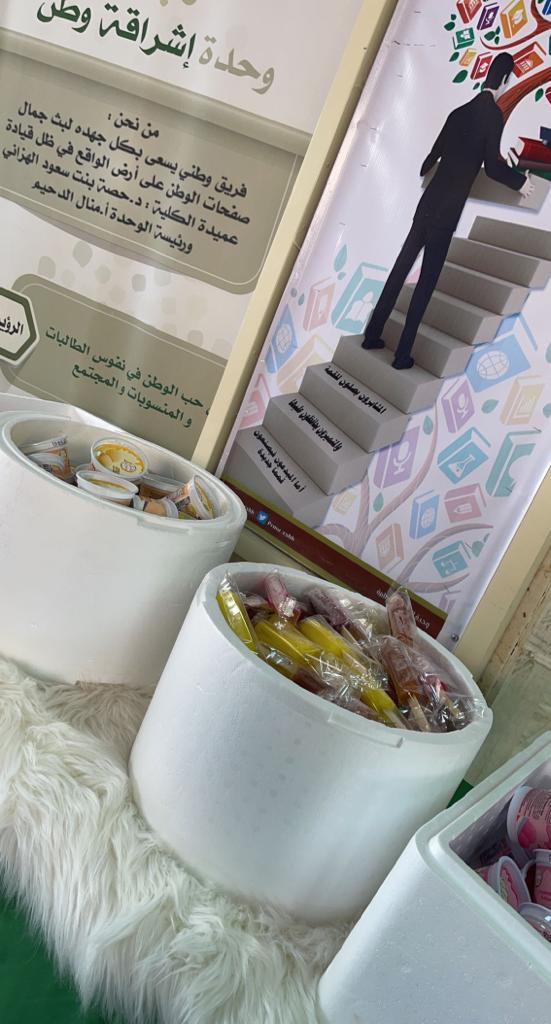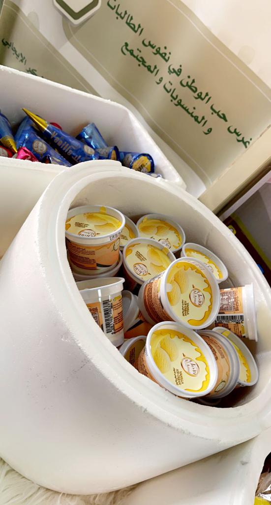 مبادرة المواطن للوطن تستحق التضحيات كيف لا وهي لبنات الوطن، ولبناته تعاد اللحظات التي تجمعنا بطالبات جامعة الأمير سطام في جو يعلوه الرهبة وتشتد فيه اللحظة جو الاختبارات تحت رعاية عميدة كلية العلوم والدراسات الإنسانية بحوطة بني تميم د. حصه بنت سعود الهزاني تسعد وحدة إشراقة وطن بإشراف ا. منال الدحيم والفريق التابع لها بإقامة ركن (فنجان قهوة وقطعة ثلجة ) صباحات الوطن التي تفخر بابناءها وبناتها وتذلل الصعاب من أجل الوصول للقمم صباح يوم الأحد الموافق: ١٤٤٣/١٠/٢٨هـ انطلاقة الاختبارات فكان هذا الركن يحكي ويصور مدى مشاعرنا ووقفتنا مع طالباتنا الغاليات وإدخال البهجة والسرور لينطلق الركن الأول بفنجان قهوة وامدادات عون لمن نسيت بأقلام مجهزه وكمامات مغلفه ومياه مبردة، والركن الثاني وهو مثلجات فرائحيه وقد ازداد السرور سرورًا بابتهاج الطالبات ودعواتهن ليكون صداه بقلوبنا لاهجا بالدعاء لهن بالتسديد والتوفيق أدام الله أمننا ووطننا.