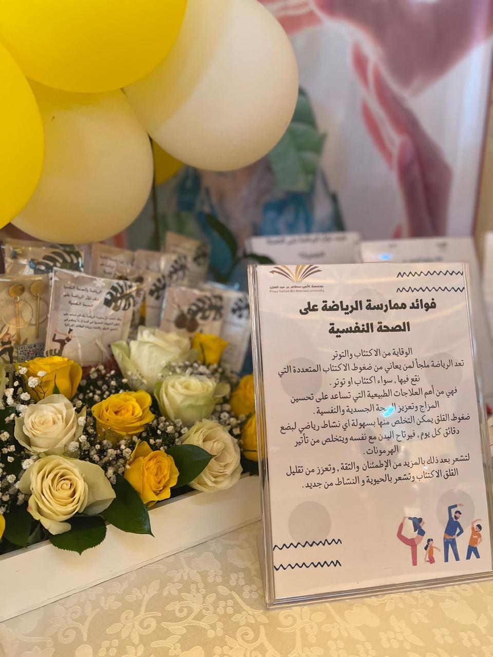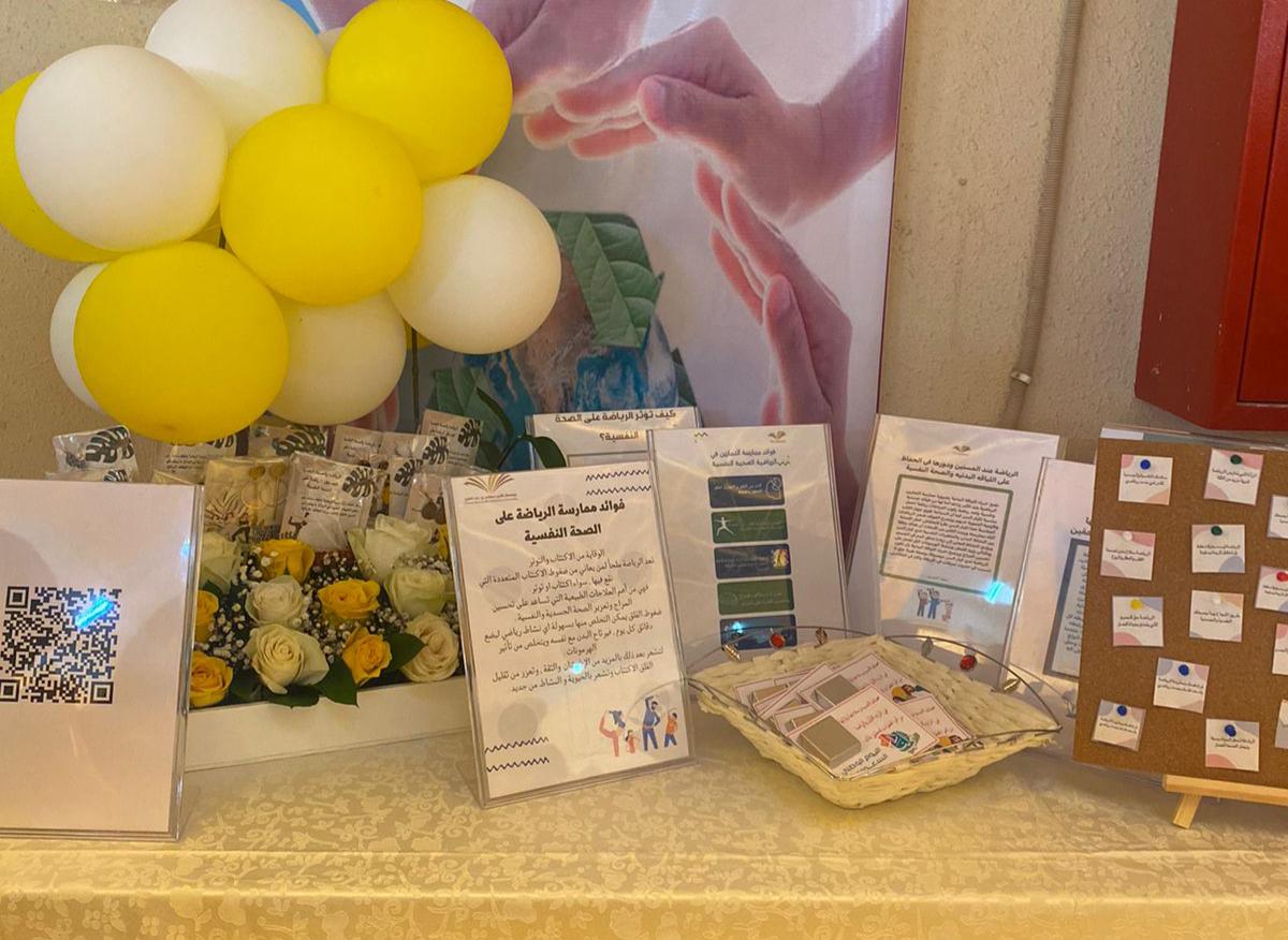 إيمانًا بأهمية الصحة النفسية وتأثيرها البارز على الفرد والمجتمع، وما تلعبه صحة الجسد من دور فعال في سلامته واتزانه النفسي، أسهم النشاط الرياضي برعاية عميدة كلية العلوم والدراسات الإنسانية بحوطة بني تميم د/ حصة بنت سعود الهزاني بتشكيل ركن توعوي عن (الرياضة وعلاقتها بالصحة النفسية)؛ للتعريف بدور الرياضة الفعّال في نفسية الشخص وعلاج بعض الأمراض والمشاكل النفسية كالقلق والاكتئاب والتوتر وغيرها، لدى جميع فئات المجتمع من شباب ومراهقين وحتى المسنين.