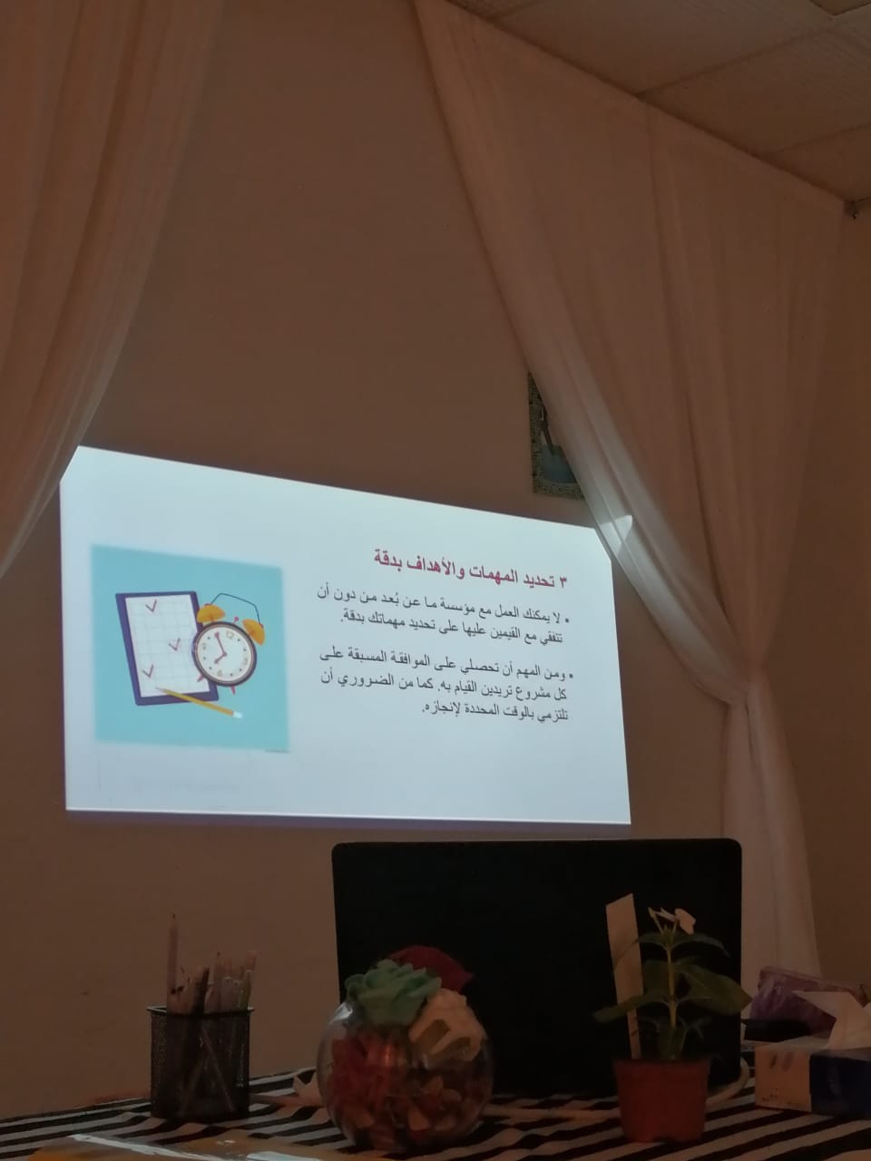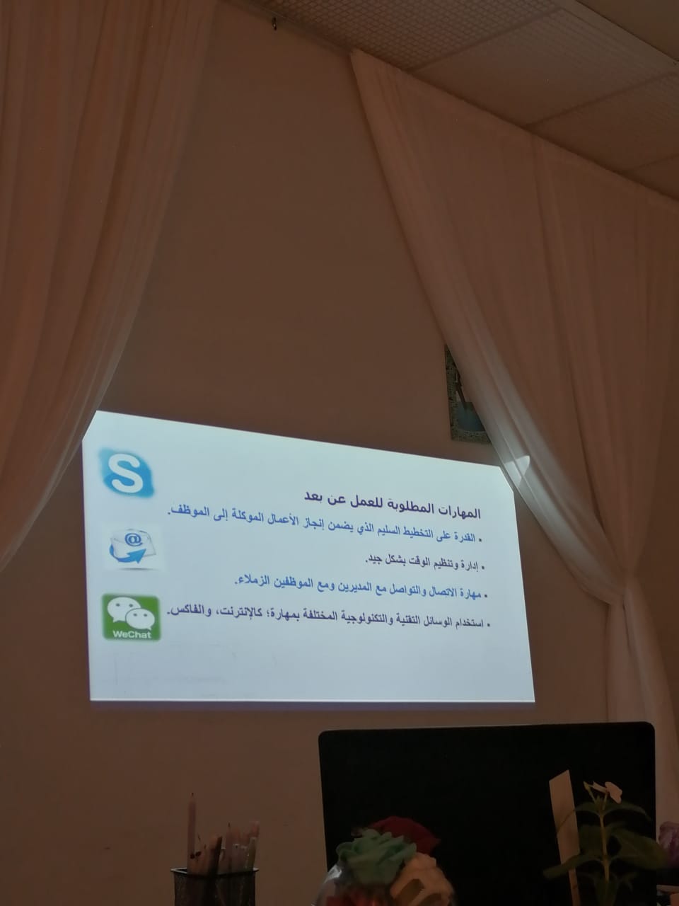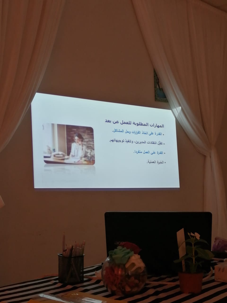 أقامت وحدة الخريجات ممثلة في برنامج التدريب المهني ورشة عمل بعنوان (التعريف بالعمل عن بعد ومجالاته) تحت قيادة عميدة الكلية سعادة الدكتورة/ حصة بنت سعود الهزاني، وذلك في يوم الثلاثاء الموافق: 1441/3/8هـ في قاعة المعارض بالكلية، قدمتها الأستاذة/عبير عبدالحكيم، الأستاذ المحاضر بقسم اللغة العربية. وقد حضر الورشة عدد من الطالبات، تعرفن على ماهية العمل عن بعد، والمهارات التي يتطلبها، ومميزاته، والأعمال المناسبة له، وختمت الورشة بعوامل نجاح هذا النوع من الأعمال الحرة. وقد حظي البرنامج بالتفاعل والايجابية والقبول من الجميع.