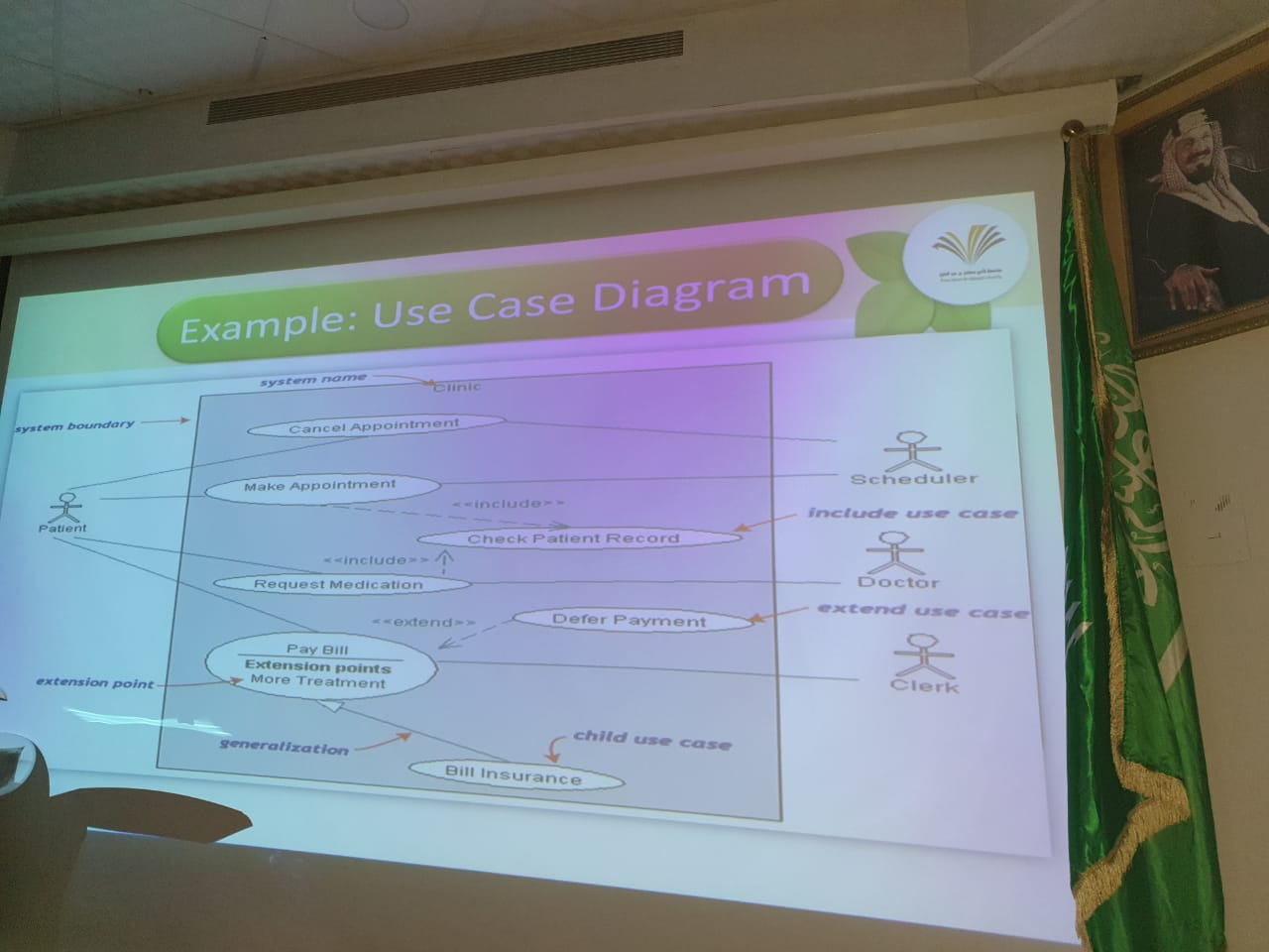 في إطار متابعة مراحل تنفيذ مشاريع التخرج، ضمن فعاليات لجنة مشاريع التخرج بوحدة الخريجات، وبقيادة عميدة كلية العلوم و الدراسات الإنسانية بحوطة بني تميم سعادة د. حصة بنت سعود الهزاني. قدمت أ/ سارة محمد صالح و أ/ وفاء حمزه فضل المحاضرتان بقسم نظم المعلومات ورشة عمل بعنوان (كيف تحللين نظام تخرجك Principles and Steps of System Analysis) لتعريف طالبات المستوى السادس بقسم نظم المعلومات بالتحليل الموجه نحو الكائنات ومخططاته Object Oriented Analysis Diagrams،، و ذلك يوم الأربعاء الموافق : 1441/3/3هـ بمسرح الكلية و بحضور (26) طالبة. بدأت الورشة أ/ سارة صالح بالتعريف بالطرق و الأدوات المستخدمة في تحليل النظم و الفروق بينهم، و ركزت على التحليل الكائني و مبادئه الأساسية. تطرقت أ/ وفاء حمزه للتعريف بلغة Unified Modeling Language (UML) المستخدمة في التحليل الكائني و رسومها التخطيطية التي تستخدم لوصف النظام و سير العمليات التي يقوم بها خلال دورة حية النظام System Development Life Cycle (SDLC) و تناولت بالشرح التفصيلي أربعة مخططات ممثلة في Use Case Diagram, Class Diagram, Sequence Diagram and Activity Diagram من حيث تعريف كل مخطط و مهامه و استخداماته و كذلك الرموز الخاصة به. و اختتمت الورشة بفتح النقاش مع الطالبات بالتطبيق على مشاريعهن، و قد قمن بتنفيذ بعض المخططات أثناء الورشة، و تمت الإجابة على كافة استفساراتهن.