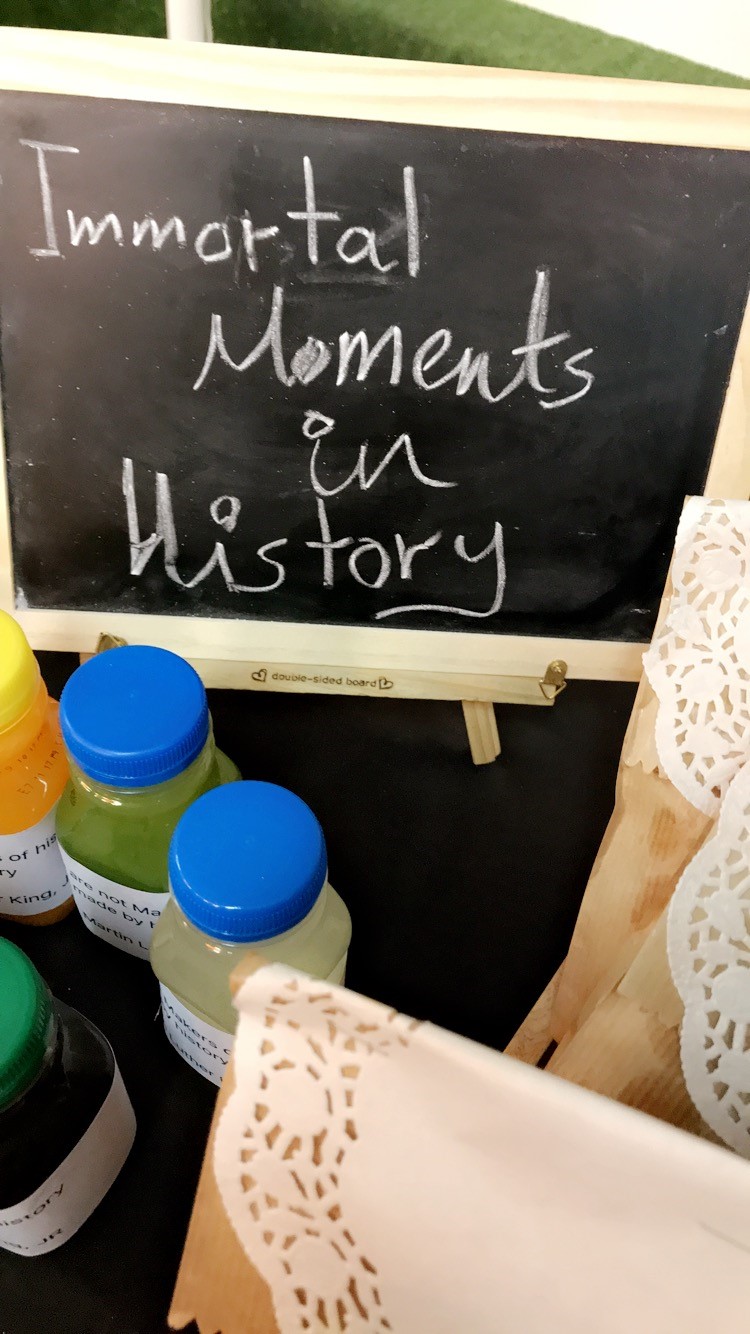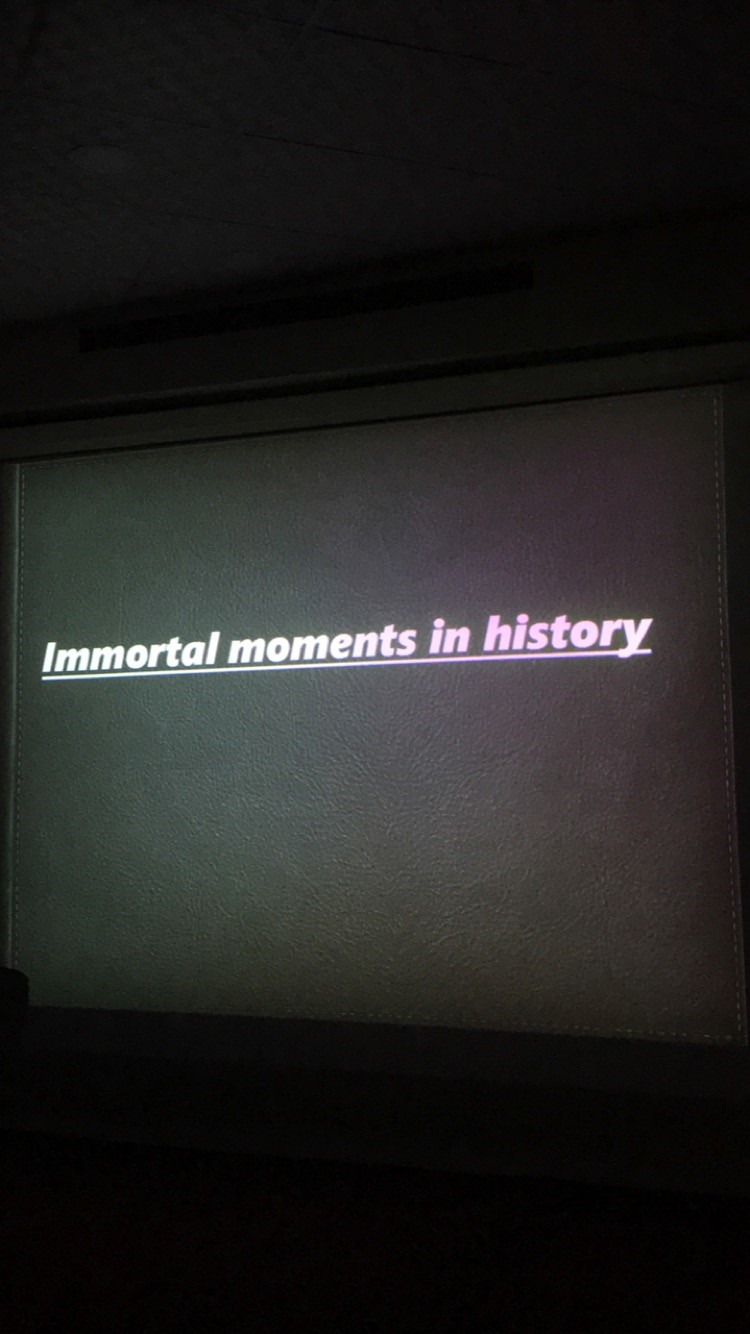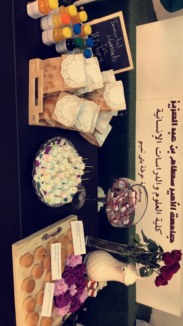 نظم قسم اللغة الإنجليزية في كلية العلوم والدراسات الإنسانية بحوطة بني تميم بالتعاون مع وحدة العمل الطلابي فعالية " لحظات خالدة في التاريخ، Immortal Momements in History " يوم الأحد 25 / 1/ 1439 هـ تحت إشراف الأستاذة لولوة الكثيري و بتنسيق مع عدد من طالبات القسم. تهدف هذه الفعالية الى إحياء بعض من الذكريات واللحظات العالقة في الماضي العريق والتاريخ الأصيل والتوعية بأهمية التاريخ وتوثيق الأحداث في حفظ الحياة البشرية، كما تهدف أيضا تعزيزمفهوم (من لا ماضي له لاحاضر له ). عرض البرنامج سلسلة من الأحداث واللحظات والمشاهد التاريخية والصور النادره التي التقطتها عدسات المصورين وكان لها الأثر الكبير في حياة البشر.تضمن هذا البرنامج العرض التقديمي المحتوي على العديد من الفقرات التي تم إلقاؤها من قبل الطالبات المشاركات وتضمن أيضا بعض الفديوهات والصور والأناشيد المختارة . كما أعد المنظمون للفعالية ركن خاص ساهم في نشر التوعية بأهمية التاريخ وتوثيق الأحداث من خلال ما يحتويه من صورو منشورات ومطبوعات.