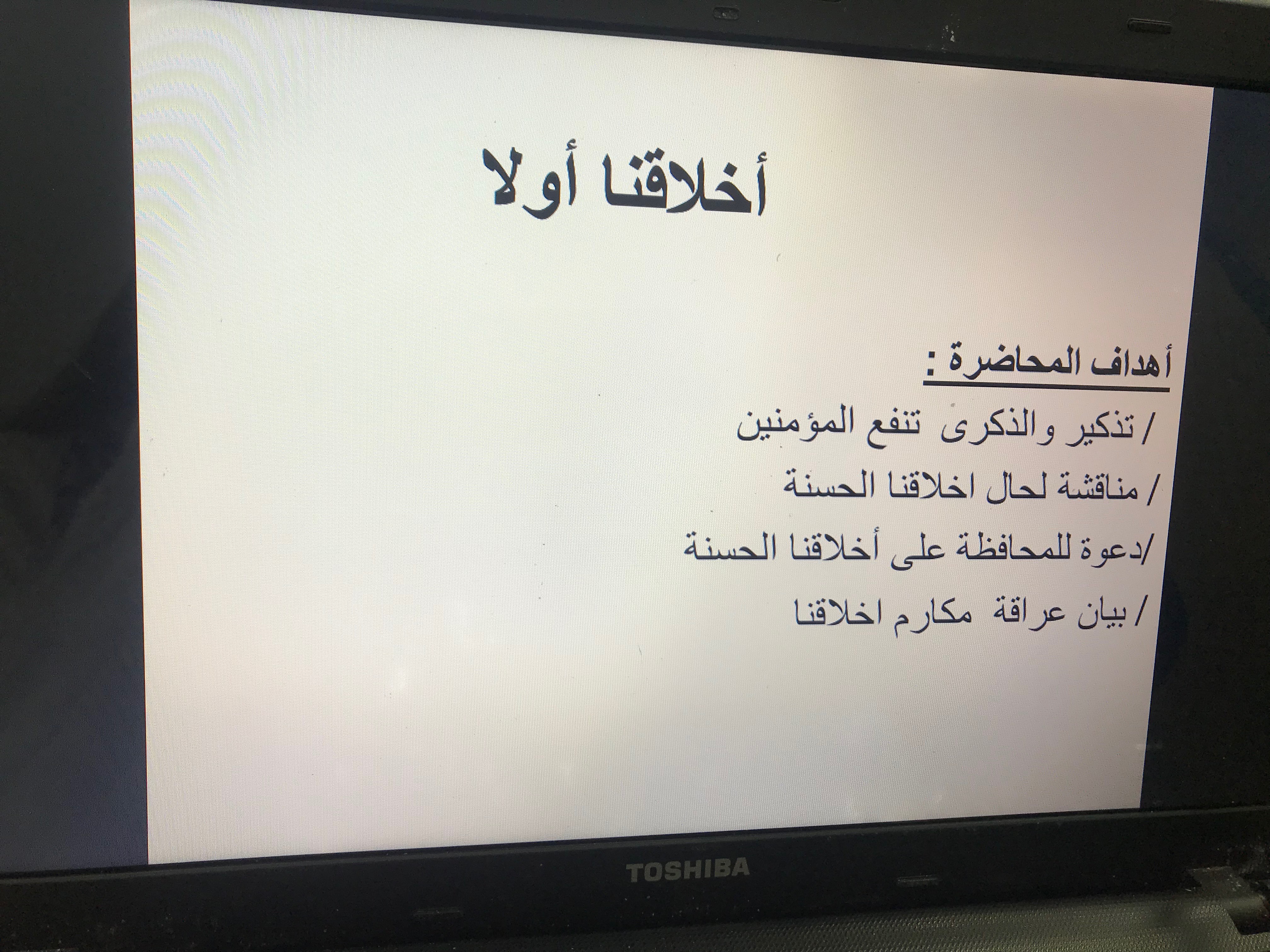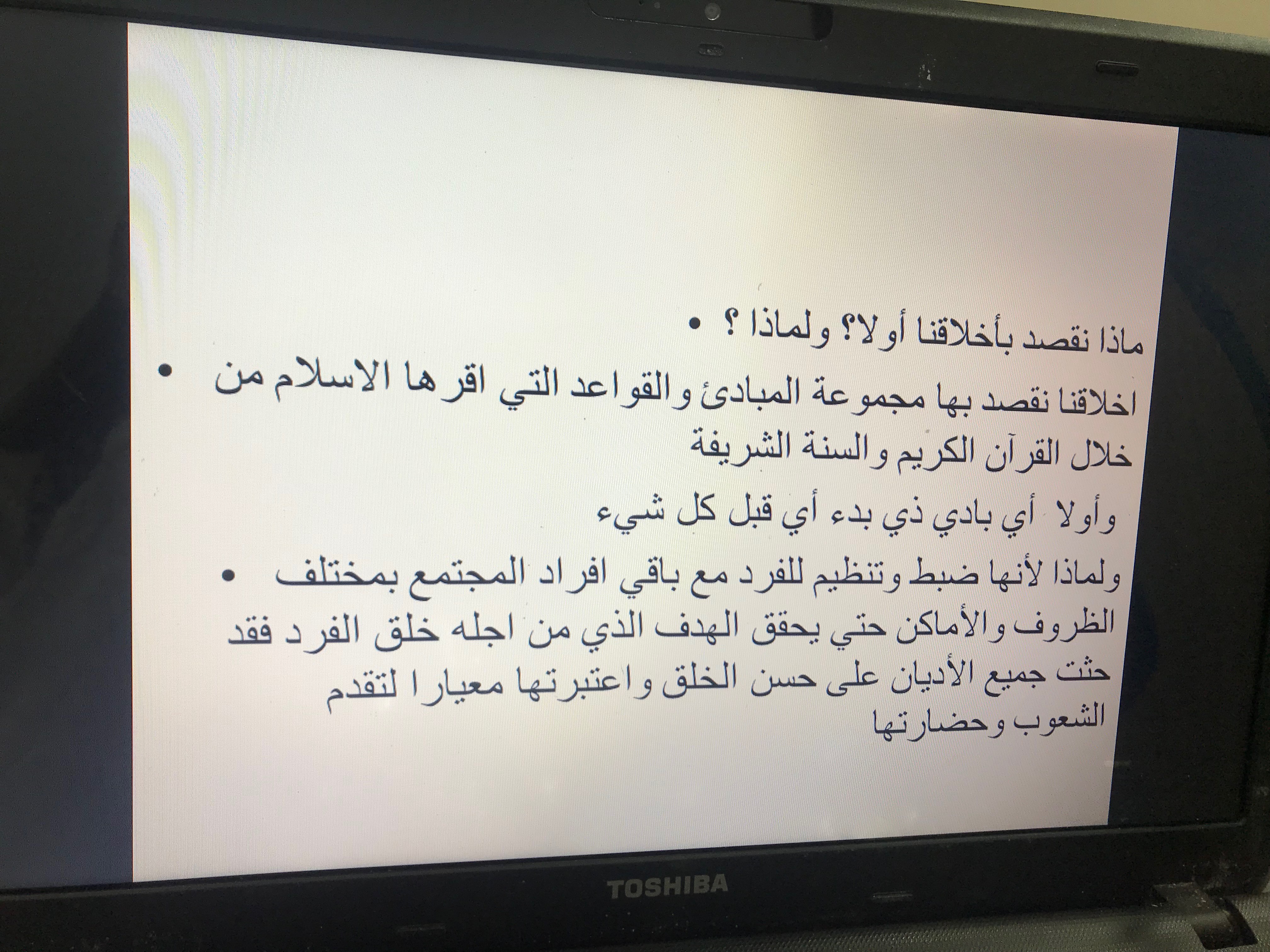 الأخلاق لها مكانةٌ رفيعةٌ في الدين الإسلامي، ومما يدل على ذلك الحثّ على التخلّق بها، والعمل على تنميتها، بأحسن الصور والأفعال.  انطلاقاً من هذا المبدأ وفي ظل قيادة عميدة كلية العلوم والدراسات الإنسانية د حصة الهزاني أقام قسم الكيمياء محاضرة بعنوان أخلاقنا أولاً يوم الاثنين الموافق 15/ ٥/ ١٤٤٠ هـ بمسرح الكلية من إعداد وتقديم د أماني فرح الخليفة. اشتملت المحاضرة على التعريف بالأخلاق الحسنة وأهميتها وفضلها وطرق اكتسابها والمحافظة عليها.  كما تم طرح مناقشات وتساؤلات للحضور ع علاقة الأخلاق بالجمال وعلاقتها بالنجاح والسعادة والأخلاق في العمل. اختتم برنامج المحاضرة بعرض فيديو مناسب للموضوع وبتوصيات عامة من أجل تربية النشء على الأخلاق الفاضلة.