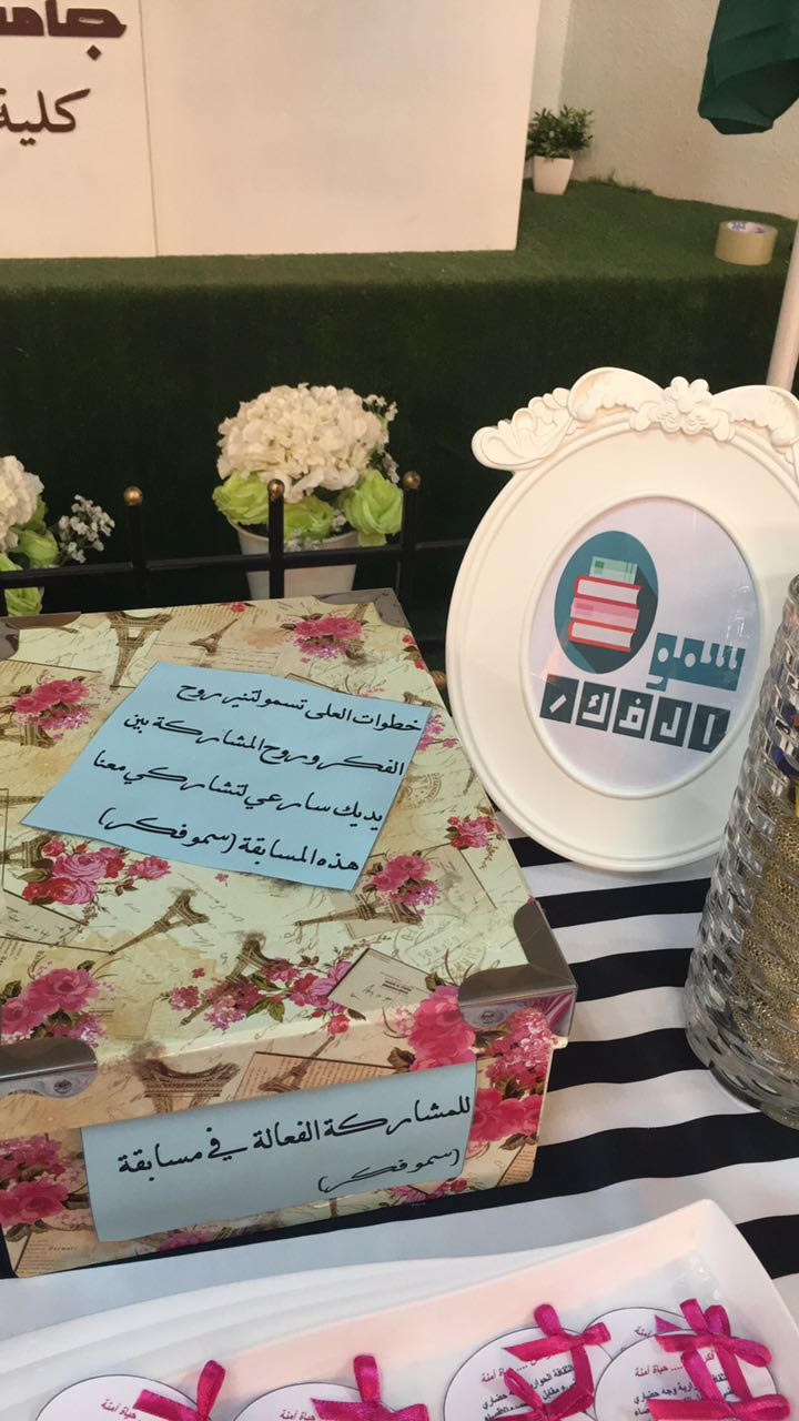 قدمت عميدة كلية العلوم والدراسات الإنسانية بحوطة بني تميم د. حصة بنت سعود الهزاني مسابقة بالكلية بعنوان (سمو فكر) تتمحور المسابقة في طرح عدد من الأسئلة حول بحث بعنوان (الشريعة الإسلامية وأثرها في تعزيز الأمن الفكري) لفضيلة الشيخ الدكتور عبدالرحمن بن عبدالعزيز السديس من كتاب (الأمن الفكري) وهو من مطبوعات جامعة نايف للعلوم الأمنية. تهدف المسابقة إلى حث الطالبات على قراءة ماهو نافع ومفيد وتحصين الفكر من الآراء المتطرفة والمنحرفة وكذلك تعزيز الأمن الفكري، حيث قامت عميدة الكلية بتدشين المسابقة يوم الأثنين الموافق ٢٨ /٦ /١٤٣٨هـ في ساحة الكلية وذلك بالإعلان عن المسابقة بوضع ركن يحتوي على نماذج من أسئلة المسابقة مع نسخة من البحث والتوزيعات وبنر يحتوي على شروط المسابقة ومواعيد استلام الأجوبة علما بأنه تم رصد جوائز قيمة للمسابقة.