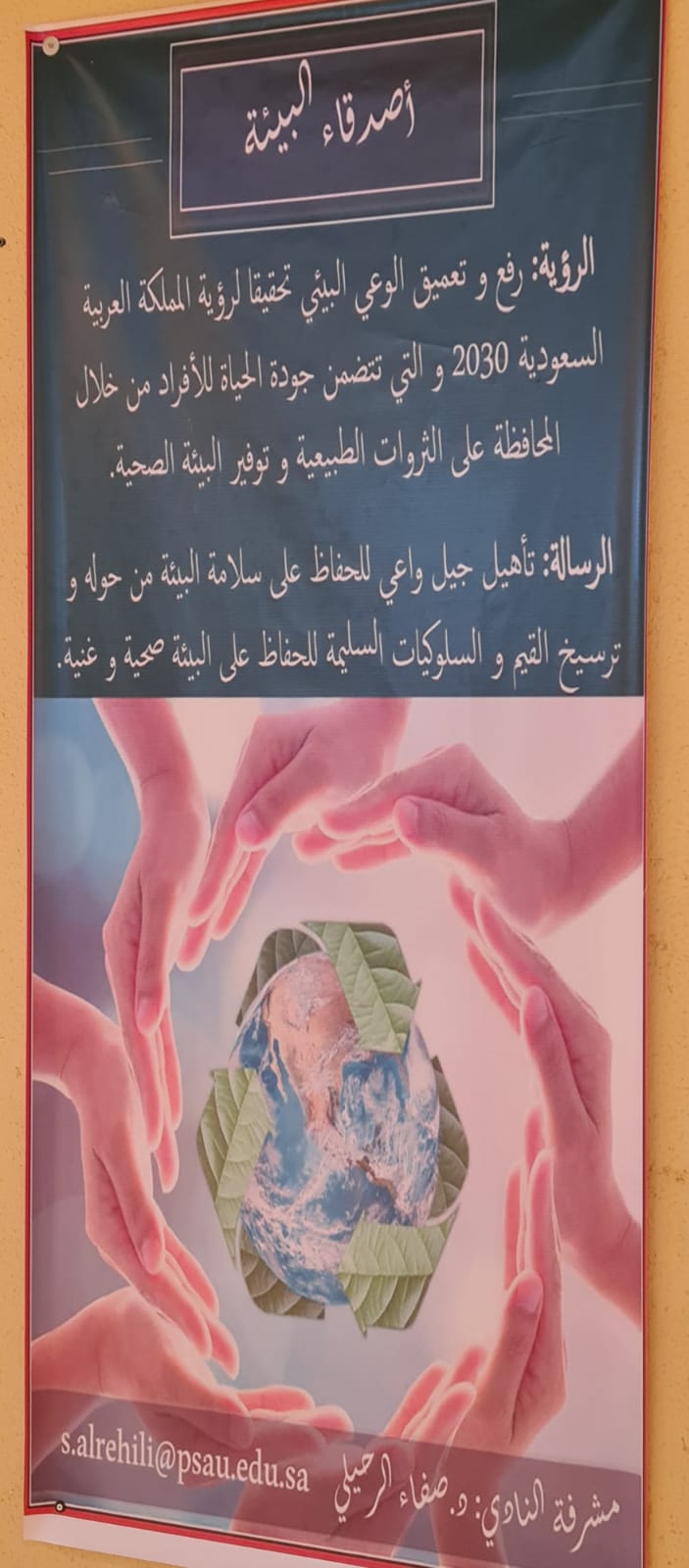 يهتم أصدقاء البيئة في العالم بمجال تخضير المدن، حيث تلعب النباتات دوراً فعالاً في تنقية الهواء فضلاً عن شكله المبهج ليعطي شعوراً بالاسترخاء والتخلص من الطاقة السلبية، ولأهمية النباتات نظم نادي أصدقاء البيئة تحت رعاية عميدة كلية العلوم والدراسات الإنسانية بحوطة بني تميم د. حصه بنت سعود الهزاني مبادرة بعنوان" نبيها خضراء" بإشراف د. صفاء الرحيلي يوم الثلاثاء الموافق: 27/ 3/ 1443هـ تضمنت ركن في ساحة الكلية احتوى على مجموعة من النباتات الداخلية والخارجية والزهور ومعلومات عن طريقة العناية بها وكذلك طريقة صنع السماد الطبيعي في المنزل، بالإضافة إلى معلومات عن الخضروات والفواكه وطريقة زراعتها، هدفت هذه المبادرة إلى التوعية بأهمية النبات ودوره الفعال في تحسين النفسية، وفي الختام تم توزيع الزهور والشتلات على الحضور.