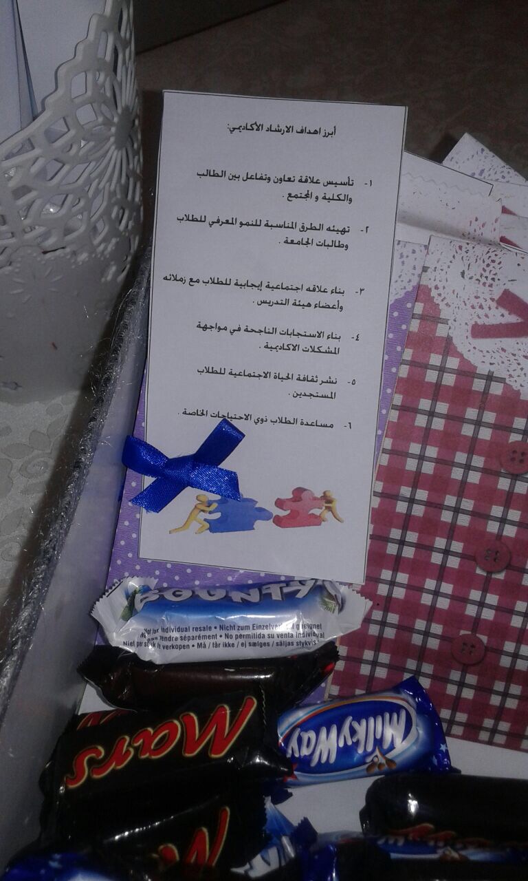 تحت رعاية عميدة كلية العلوم والدراسات الانسانية بحوطة بني تميم د. حصة بنت سعود الهزاني و بالتعاون مع وحدة العمل الطلابي نظم قسم القرآن الكريم والدراسات الاسلامية يوم الاربعاء 21 /1/ 1439 هـ الساعة التاسعة والنصف ركن تعريفي بالإرشاد الاكاديمي بإشراف منسقة الارشاد الاكاديمي أ.اسلام فرح . اشتمل الركن على كتيبات ومطويات وادلة خاصة بالأنظمة الارشادية وناقشت المنسقة مع الطالبات أهم الصعوبات والمشاكل الدراسية التي قد تطرأ خلال سنوات الدراسة وكيفيه حلها .
