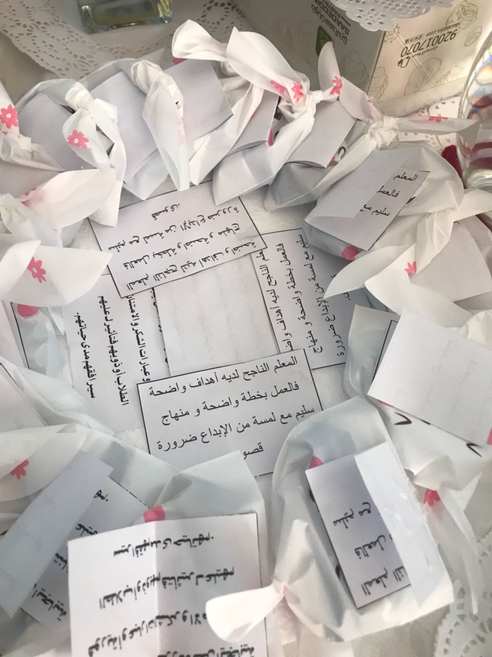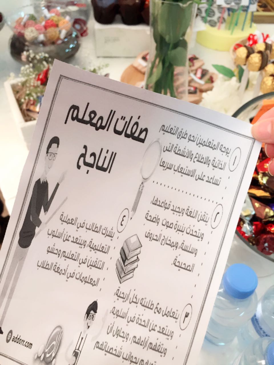 اقام قسم التربية وعلم النفس بكلية العلوم والدراسات الإنسانية بحوطة بني تميم ركناً تعريفياً وتثقيفياً عن) صفات المعلمة الناجحة) بإشراف د . رقيه أحمد الحبو  يوم الإربعاء    ١٨ / 7/ 1439 هـ.  تحدثن فيه الطالبات عن المعلم الناجح والصفات التي يجب أن يتحلى بها ودوره المهم في تحفيز الطلاب للمعرفة والاستزادة من العلم بالإضافة الى إلمامه بالمادة الدراسية التي يقوم بتدريسها وسهوله توصيله للمعلومات. تضمن الركن توزيعات ومنشورات تعريفية عن المعلم الناجح وصفاته.