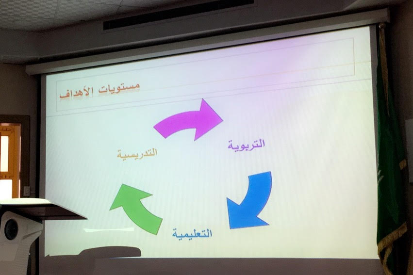 وأخيرًا مصفوفة الأهداف ونواتج التعلم والاختبارات وفقا لها والوزن النسبي لكل من الأهداف ونواتج التعلم والأسئلة في مصفوفة التعلم وقد تخلل ورشة العمل العديد من النقاشات حول تلك المحاور. وفي النهاية أجاب الدكتور على بعض الاستفسارات وقدمت رئيسة وحدة التميز العلمي بالكلية أ. فاطمة بنت عبدالعزيز الكليب شكرها وتقديرها للدكتور يسري على مابذله من جهد ووقت لتقديم هذه الورشة الفعالة.