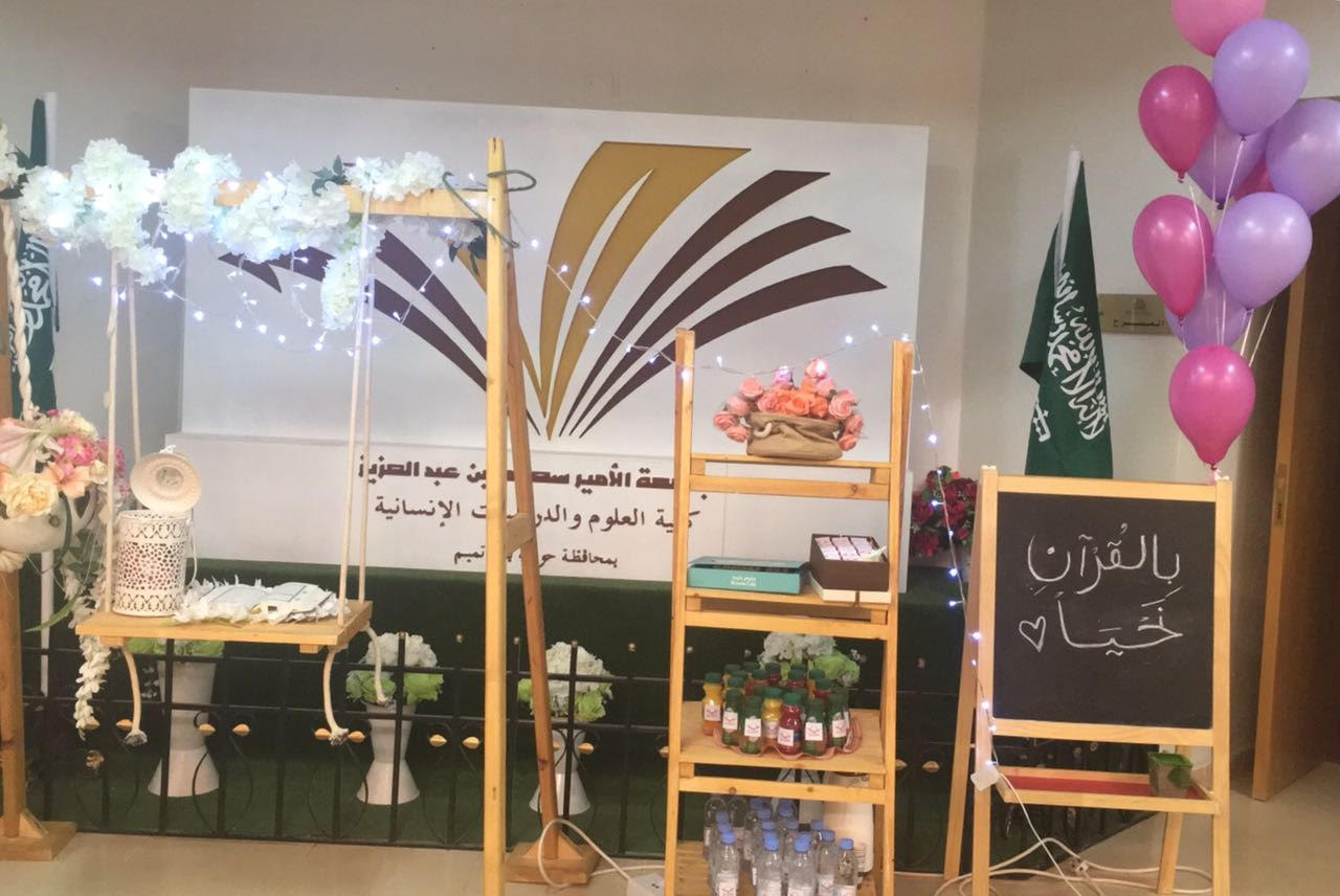 أقامت وحدة العمل الطلابي بالتعاون مع قسم الدراسات الإسلامية برنامج تدشين حلقات القرآن الكريم بكلية العلوم والدراسات الإنسانية بحوطة بني تميم يوم الإثنين الموافق ١٣ /٣ /١٤٣٨هـ في تمام الساعة ١١ ونصف في مسرح الكلية وابتدأ التدشين بآيات من الذكر الحكيم وتلى ذلك كلمة لعميدتنا الفاضلة بعد ذلك تم عرض فيديو عن أهمية قراءه القرآن والتدبر في آياته والإصرار على الحفظ ثم ألقت كلا من أ. منال الدحيم وأ. فوزية الجمعة بعض الكلمات الجميلة والمعبرة التي تحفز الطالبات والمنسوبات للتسجيل بالحلقات القرآنية وفتح مجالات أكبر للطالبات والموظفات للتسجيل كما قامت عميدة الكلية بتشجيع الطالبات والزيادة من حماسهمن بالإعلان عن تخصيص جوائز قيمة للمراكز المتقدمة في الحفظ تقدم لهن في نهاية العام. وأخيرًا كل الشكر والتقدير لمن ساهم في إنجاح البرنامج وهو الراعي الرسمي الأستاذ/ صالح بن شديد المجلي صاحب مجموعة عتبات المجال العقارية، ولوحدة العمل الطلابي متمثلة بالأستاذة إسلام العمري وأ. منال الدحيم وأ. منى بن نويشر ومن قسم الدراسات الإسلامية أ. مريم الحسين وهذه البداية هي بداية لانطلاقة فعالة لحفظ كتاب الله جعلها الله في موازين حسنات من جد واجتهد.
