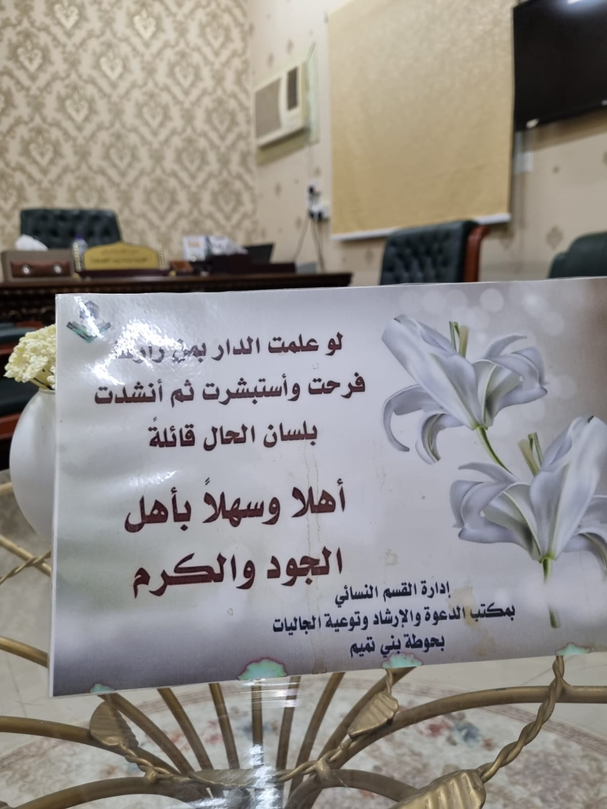 كما تتقدم جمعية الدعوة ووحدة العلاقات العامة بالكلية بخالص الشكر والعرفان لجميع الحضور من مديرات وموظفات الكلية، وشكر خاص لموظفات جمعية الدعوة على الجهود المبذولة لإظهار هذا اللقاء بالمظهر اللائق.