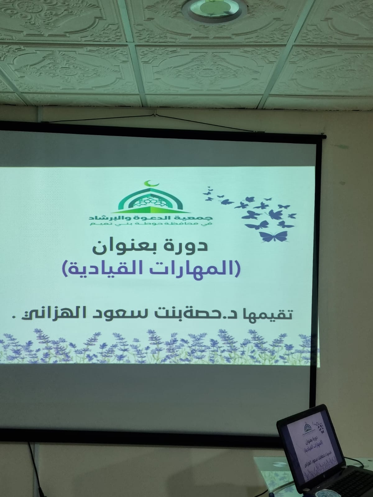 انطلاقا من مبدأ الشراكة المجتمعية التي ترسي لتبادل الخبرات نظمت جمعية الدعوة والإرشاد بحوطة بني تميم بالتعاون مع وحدة العلاقات العامة بكلية العلوم والدراسات الإنسانية بحوطة بني تميم دورة بعنوان (المهارات القيادية) قدمتها عميدة كلية العلوم والدراسات الانسانية بحوطة بني تميم د. حصة بنت سعود الهزاني بإشراف مديرة الجمعية أ. فوزية الجمعه في يوم الثلاثاء الموافق: ١٤٤٤/٦/٣هـ في تمام الساعة التاسعة صباحًا. لقاء مع نخبة من المديرات في المحافظة، حيث تناولت الدورة المحاور التالية: