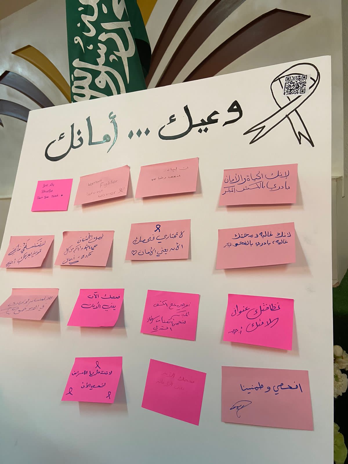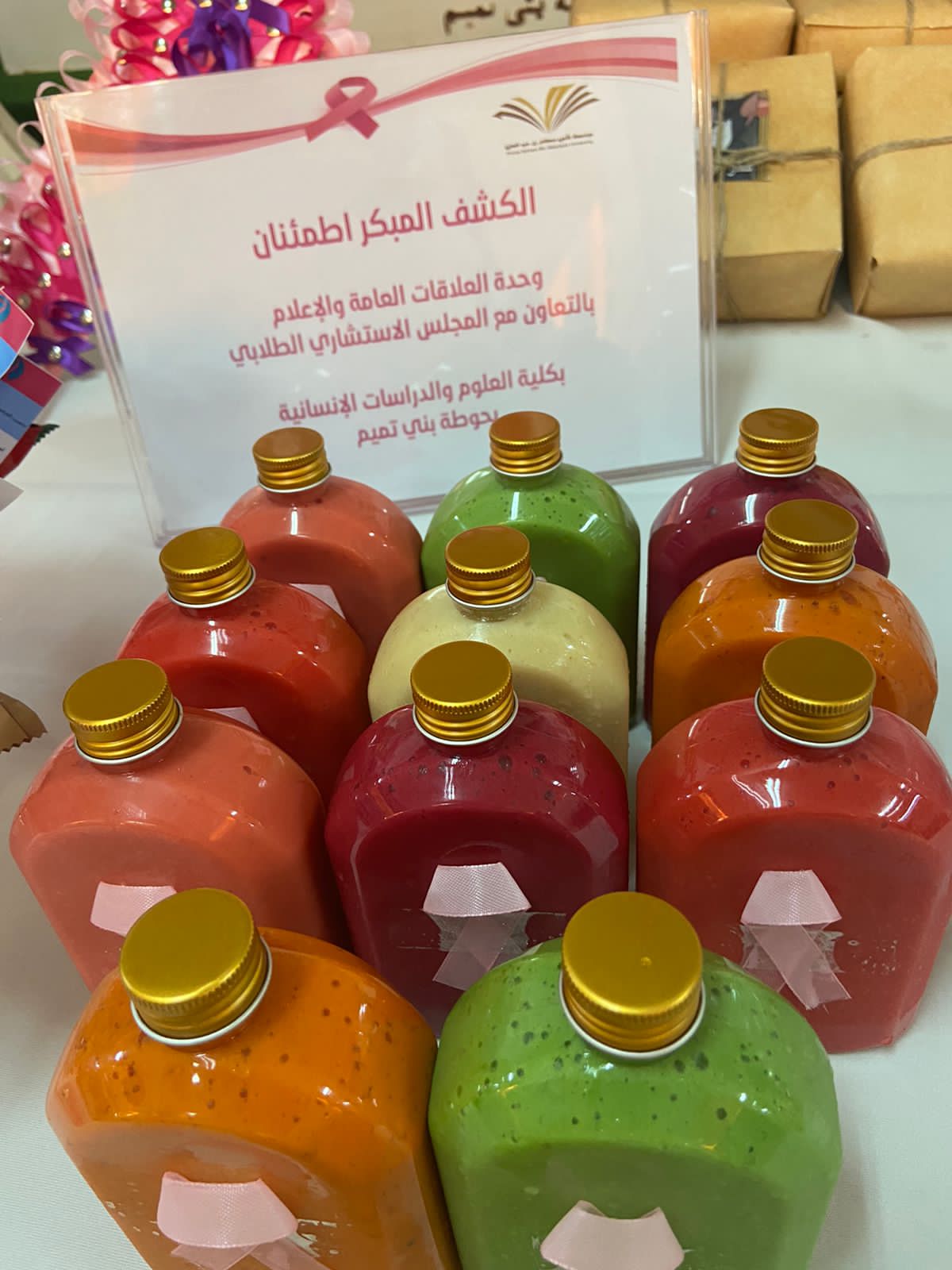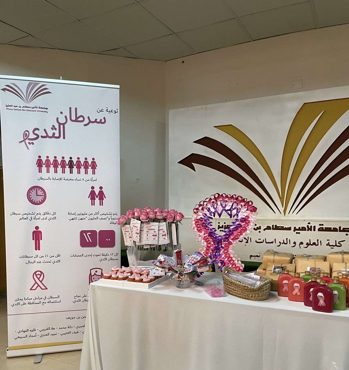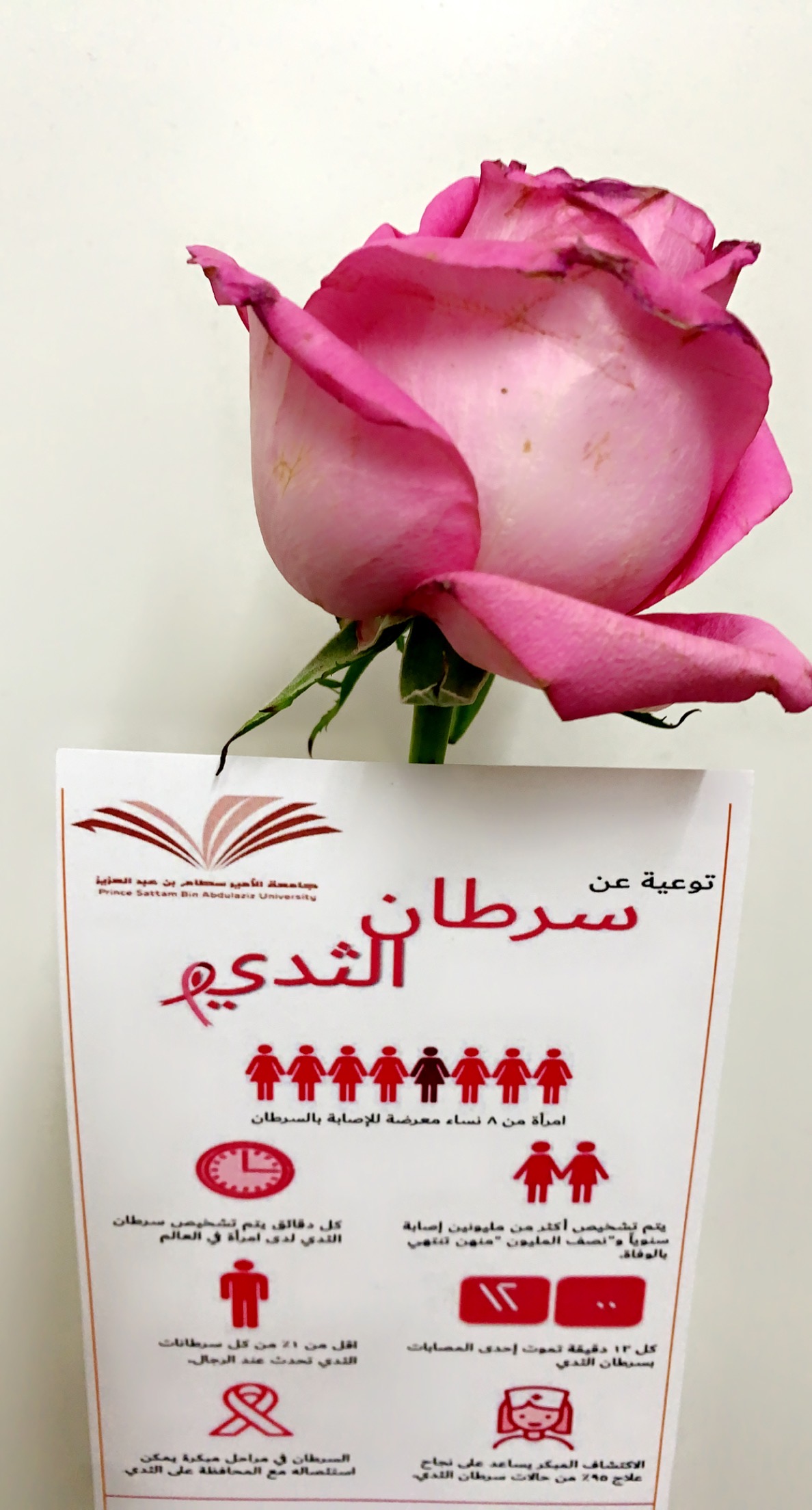يعتبر سرطان الثدي من أكثر أنواع الأورام التي تصيب النساء في العالم المتقدم والعالم النامي على حدّ سواء، فهناك حملات صحية تحدث في كل عام من شهر أكتوبر في جميع أنحاء العالم تهدف إلى تثقيف الناس حول الوقاية من سرطان الثدي وعلاجه، ويتخذ اللون الوردي رمزاً لذلك سمي أكتوبر الوردي، ولأهمية التوعية بهذا المرض وبرعاية كريمة من سعادة عميدة كلية العلوم والدراسات الإنسانية بحوطة بني تميم د. حصة بنت سعود الهزاني نظمت وحدة العلاقات العامة بالتعاون مع المجلس الاستشاري الطلابي بإشراف أ. تهاني عبد الرحمن الجويعد وأ. منيره إبراهيم التميمي فعالية بعنوان (الكشف المبكر اطمئنان) في يوم الأحد الموافق: 1443/3/18هـ، بساحة الكلية.