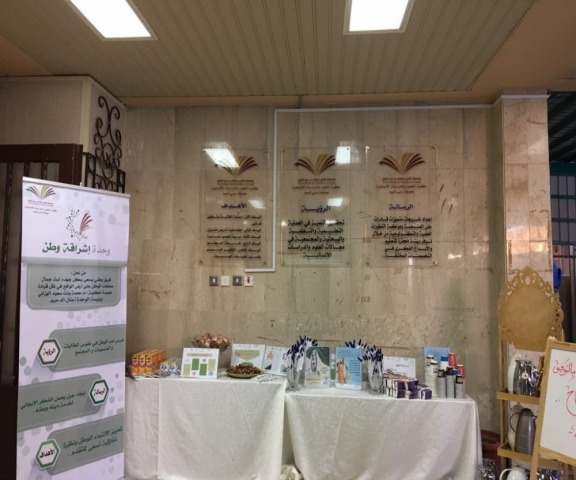 ٦ /٤/ ١٤٣٩ هـ ، حيث نظمت الوحدة تحت إشراف الأستاذة منال الدحيم ركناً في بهو الكلية احتوى على أقلام وبعض التوزيعات والنصائح والمشروبات الساخنة .