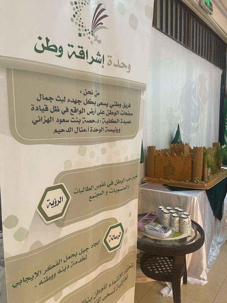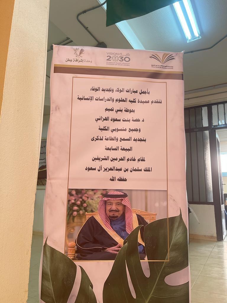 نظمت وحدة اشراقة وطن تحت رعاية عميدة كلية العلوم والدراسات الإنسانية بحوطة بني تميم د. حصة بنت سعود الهزاني فعالية بعنوان "عهد ووعد" وذلك يوم الاثنين الموافق: 1443/4/3هـ.