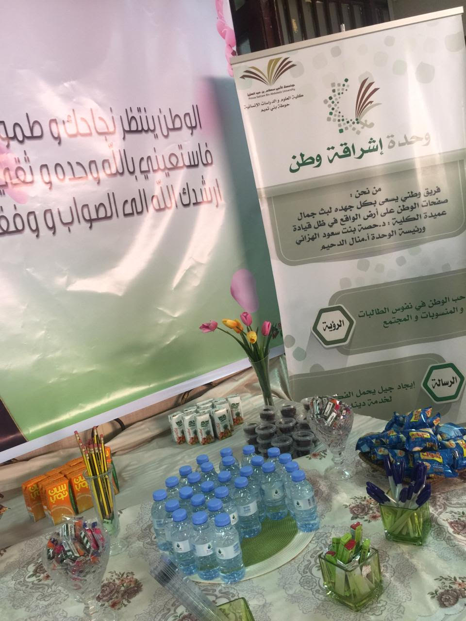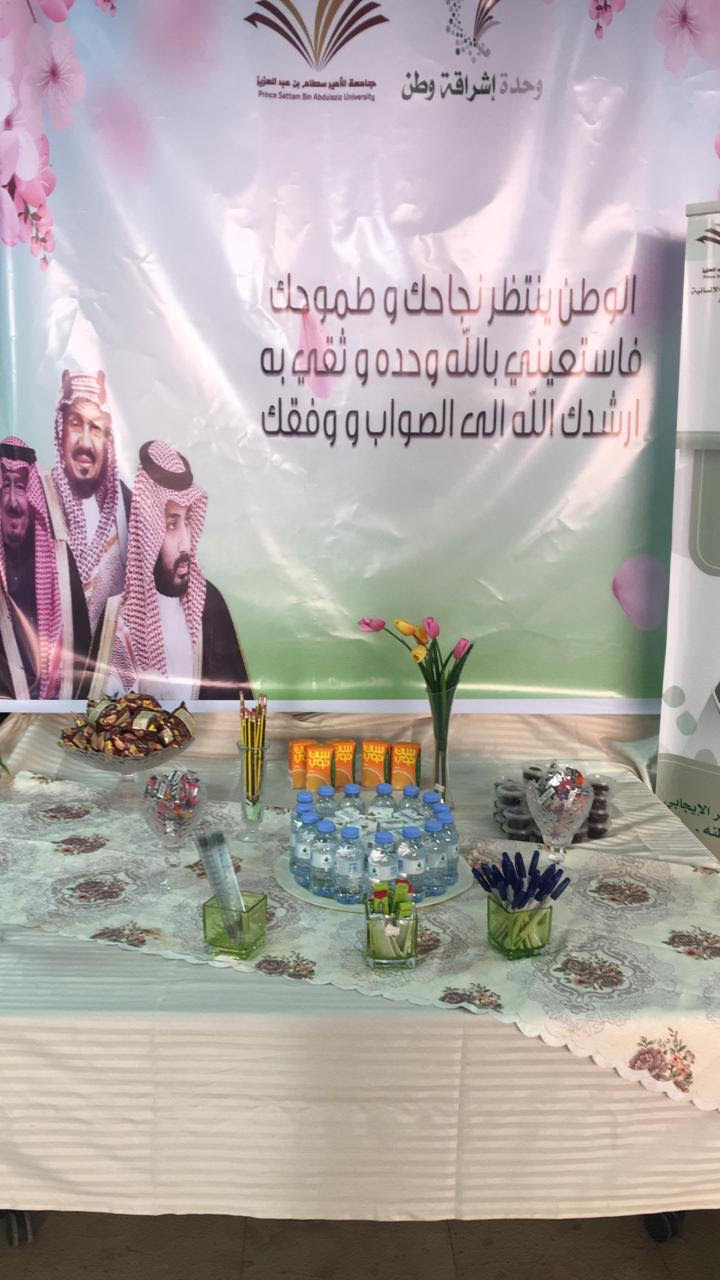 مع إشراقة الشمس أيام الاختبارات كل فصل دراسي، يكون هناك إطلالة مميزة لوحدة اشراقة وطن في استقبال الطالبات قبل الدخول للجان الاختبارات. تحت قيادة عميدة الكلي الدكتورة حصة بنت سعود الهزاني تنظم وحدة إشراقة وطن بكلية العلوم والدراسات الإنسانية بحوطة بني تميم ركن استقبال الطالبات تحت إشراف الأستاذة منال الدحيم والفريق التابع للوحدة. يهدف الركن للإيحاء الوطني في ايام الجد والمثابرة أنك ايتها الطالبة لبنة يحتاجها الوطن وأن تميزك ينعكس على فئات كبيرة من المجتمع. تميز الركن بتوفير اهتمامات الطالبة للاختبار وتقديم وجبات خفيفة وبث روح التفاؤل والعطاء في النفوس. تعد هذه المبادرة من المبادرات المميزة التي تضفي انطباع جميل للطالبات أيام الاختبارات بلمسة وطنية.