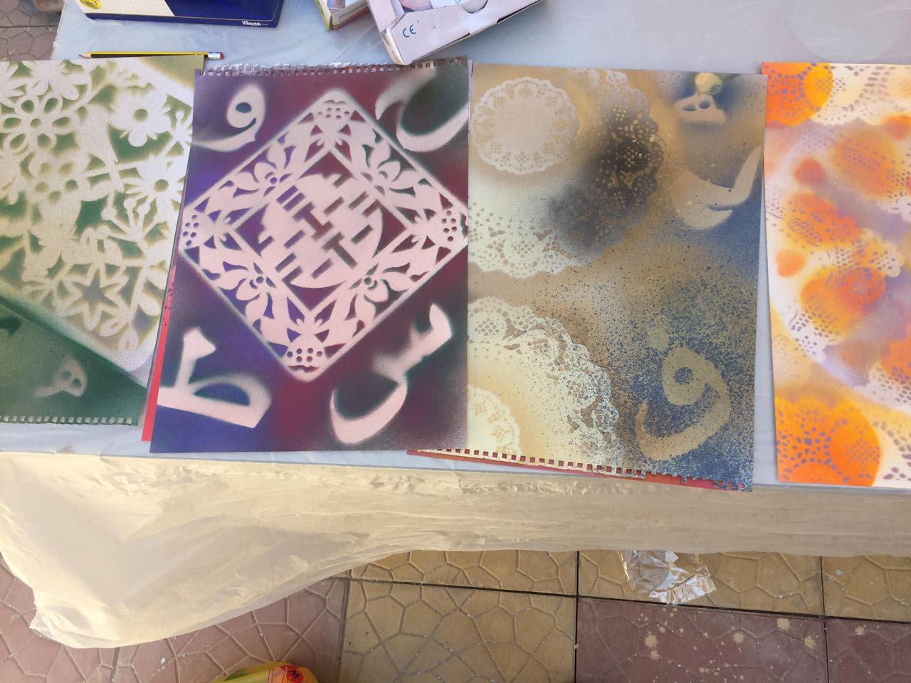أقام نادي الابداع في كلية العلوم والدراسات الانسانية بحوطة بني تميم ورشة عمل بعنوان" ابتكار مدركات تشكيلية جديدة من الزخارف الاسلامية باستخدام طباعة الاستنسل " وذلك يوم الأحد الموافق 9/ 2/ 1439 هـ بإشراف أ/ مها الصقعبي وحضور  عميدة الكلية الدكتورة حصة الهزاني. هدفت هذه الورشة إلى الاستفادة من مجال الطباعة بالاستنسل كأحد المنطلقات الابداعية في مجال الطباعة اليدوية لتنمية التراث الثقافي الإسلامي من خلال المحافظة على الماضي والتطلع للمستقبل. وفي نهاية الورشة تمكن عدد من الطالبات من انتاج لوحات فنية تجمع بين أنواع الزخرفة الإسلامية بأسلوب فني معاصر. وقد شهدت  هذه الفعالية حضور  من عميدة الكلية والوكيلة وعدد من الطالبات وأعضاء هيئة التدريس  بالكلية. السابق التالي