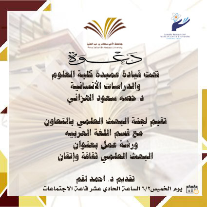أصبح البحث العلمي ضرورة من ضروريات الحياة لأنه يقود الأمم إلى التقدم ،و التميز في شتى المجالات، من هذا المنطلق واسهاماً في تطوير بيان أهمية البحث العلمي، نظمت وحدة البحث العلمي بكلية العلوم والدراسات الإنسانية بحوطة بني تميم بالتعاون مع قسم اللغة العربية ورشة عمل بعنوان: "البحث العلمي ثقافة وإتقان" يوم الخميس الموافق 02/06/1440هـ في تمام الساعة الحادية عشرة بقاعة الاجتماعات بالدور الأرضي. قدم الورشة أحمد علي لقم أستاذ اللغويات العربية المشارك واستهدفت الورشة أعضاء هيئة التدريس والطالبات. تهدف الورشة إلى تفعيل الارتقاء بآليات البحث العلمي والنشر الرصين وكيفية التغلب على التحديات المعيقة، وطرق الإتقان، واختيار أوعية النشر العلمي. وقد أقيمت الورشة على مدار على مدار ساعة ونصف، وتضمنت عدة محاور هي:- استنتاج مفهوم البحث العلمي وتحديد أهميته. خطوات البحث العلمي. التمييز بين المناهج المختلفة للبحث العلمي. تحديد العناصر الأساسية لخطة البحث العلمي. اكتساب مهارات البحث العلمي. إتقان التعامل مع مصادر المعرفة. إتقان مهارة كتابة المراجع والتوثيق. التعرف على أهم وأشهر الأخطاء العلمية. شروط البحث العلمي المقدم للدعم. إتقان اختيار أوعية النشر.كما تناولت الورشة تدريب تفصيلي على بعض المواقع والبحوث، وتزويد الحاضرين بالمواقع العالمية الهامة للنشر العلمي. هذا وقد تميزت الورشة بالتفاعل الإيجابي من قِبل أعضاء هيئة التدريس والحضور.