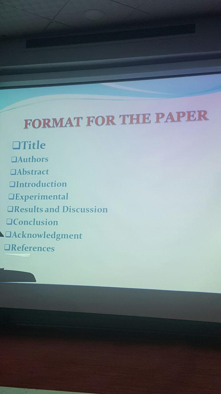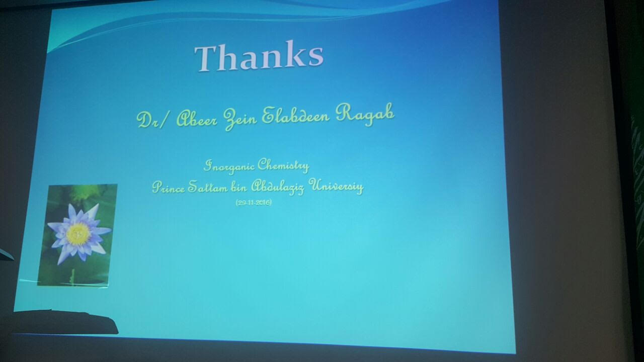 أقامت وحدة البحث العلمي بالتعاون مع قسم الكيمياء ورشة عمل بعنوان (كيفية كتابة بحث علمي) تحت إشراف دكتورة عبير زين العابدين رجب رئيسة قسم الكيمياء وذلك يوم الثلاثاء الموافق 29/ 2/ 1438هـ في تمام الساعة 12 ظهرًا بمسرح الكلية، تهدف الورشة إلى كيفية كتابة ورقة علمية للنشر في المؤتمرات والمجلات العالمية المحكمة في جميع التخصصات للارتقاء بالمستوي الأكاديمي لأعضاء هيئة التدريس.