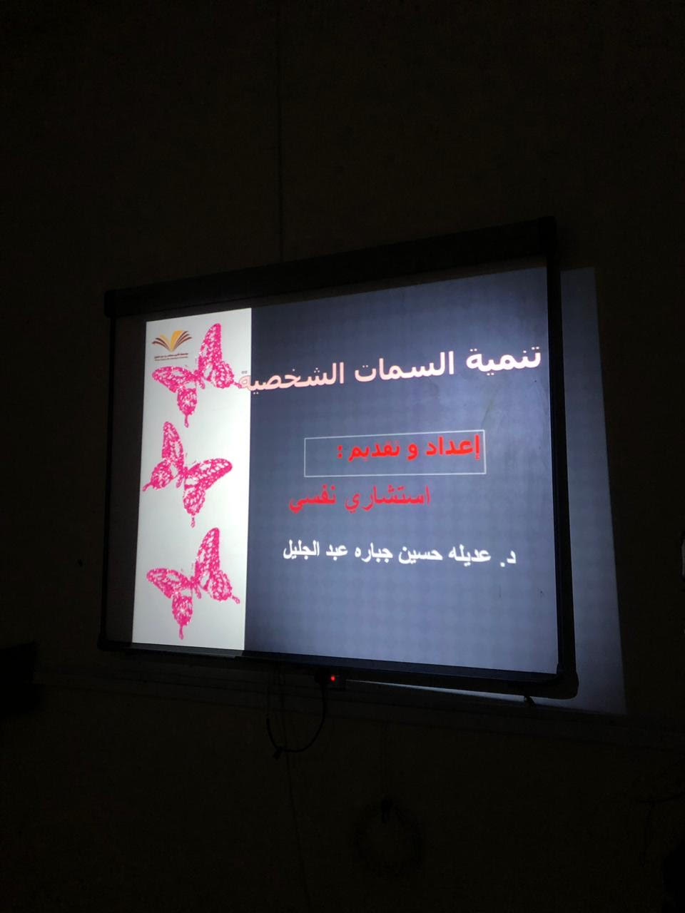 أقامت وحدة الخريجات متمثلة ببرنامج التدريب المهني بكلية العلوم والدراسات الإنسانية بحوطة بني تميم ورشة عمل عن ( تنمية السمات الشخصية ٢ )تحت رعاية عميدة الكلية سعادة الدكتورة/ حصة بنت سعود الهزاني، وذلك يوم الأربعاء الموافق: ٢٤/ ٢/ ١٤٤١هـ في قاعة التدريب بالكلية، وقد قدمتها الدكتورة/ عديلة حسين جباره الأستاذ المساعد بقسم التربية وعلم النفس ، وقد حضر الورشة ثلاثون طالبة ونيفا ، حيث تعرفن على مفهوم الذات و تطويرها وأهمية ذلك في بناء الشخصية وطرق و مهارات تطوير الذات و بناء الشخصية النموذج الخماسي لتطوير الذات ومفهوم الثقة بالنفس و علاقتها بتطوير الذات وبناء الشخصية ، وقد لقي البرنامج تفاعلا وقبولا لدى الجميع.